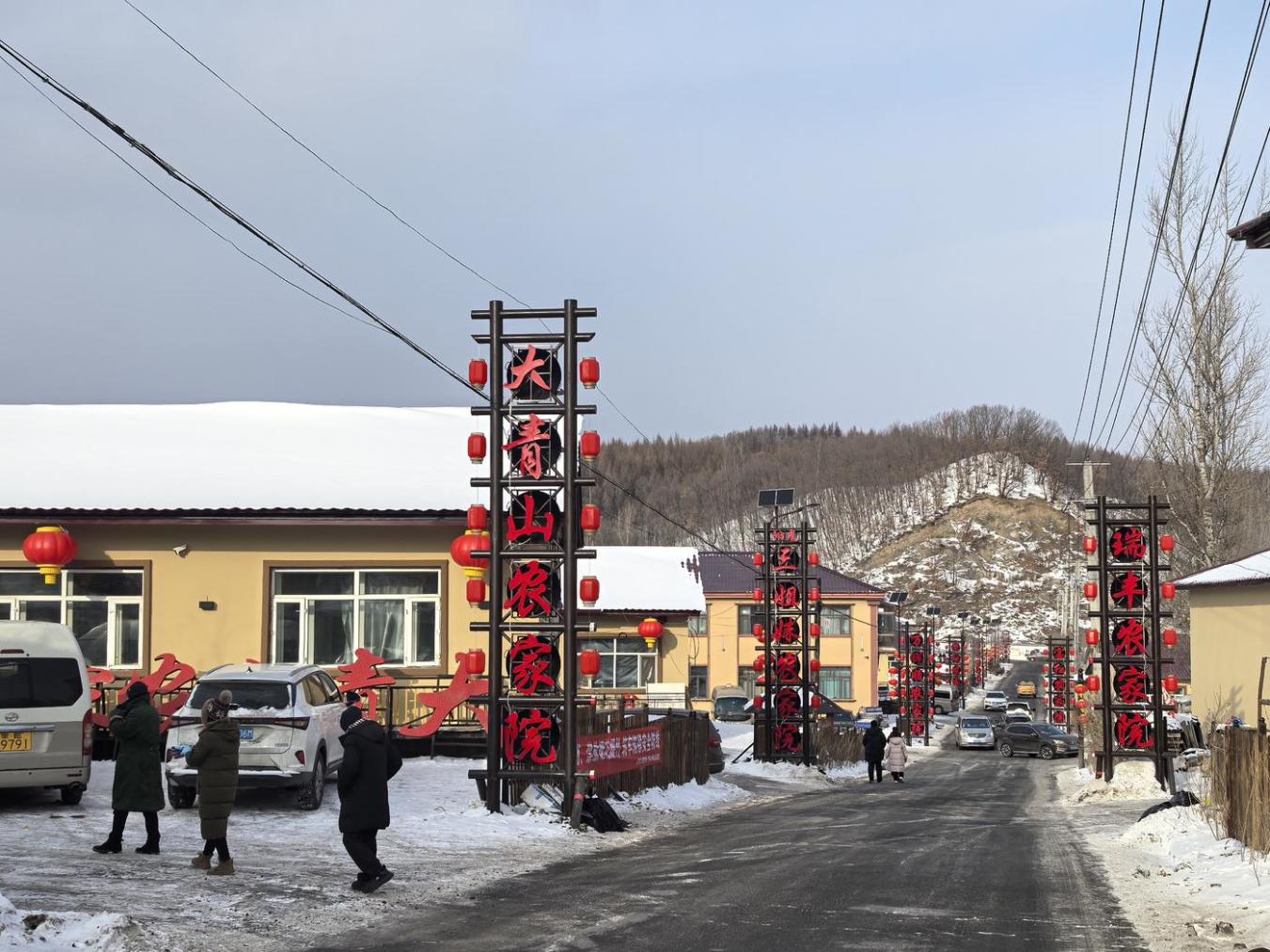 记者采访时正值亚冬会倒计时,同时也是青山村每年最忙碌的雪季。标志性的红帽子雪人扎堆“站”在村口,村里主道两侧一幢幢农家院呈一字排开,“黑A”“辽A”“蒙E”等本地和外地车接连涌来,村口被堵得严严实实。