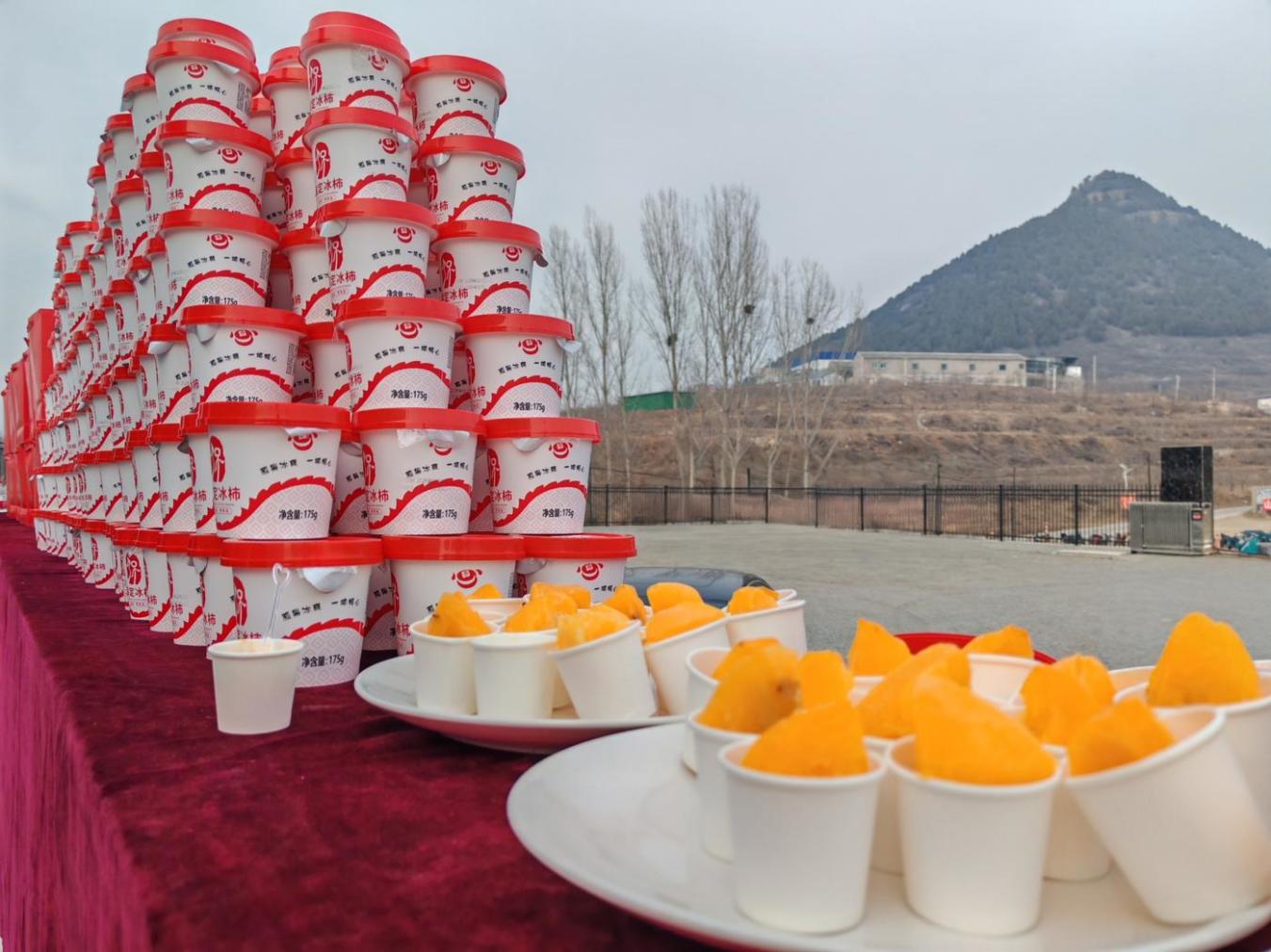 掀开杯盖、取出小勺、揭掉封膜,里面露出一整个去皮大柿子,圆鼓鼓、黄灿灿、冰晶晶。稍顷,剜一小块入口,舌齿间顿时溢满柿子的甜糯多汁,外加冰淇淋般的细滑冻爽。近日,到河北省保定市易县独乐乡中独乐村的参观者,收到了当地企业热情递上刚出库的“保定冰柿”果杯。