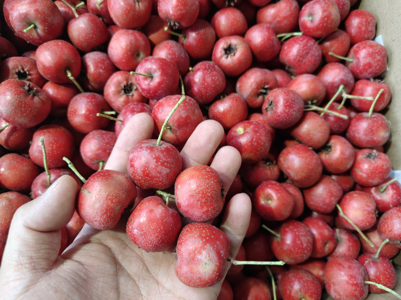 《大五棱山楂》现摘现发,量大,以批发市场,加工厂为主