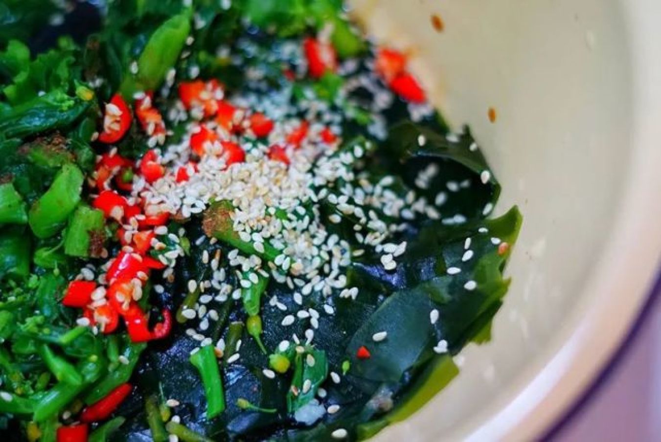 此外,海带也可以与紫甘蓝、红椒片一起凉拌,打造出一道视觉与味觉双重享受的创意凉菜。紫甘蓝富含花青素,红椒提供丰富的维生素C,三者结合不仅营养均衡,而且颜色对比强烈,让人食欲大增。只需简单调味,便能品尝到这道充满活力的凉拌佳肴。