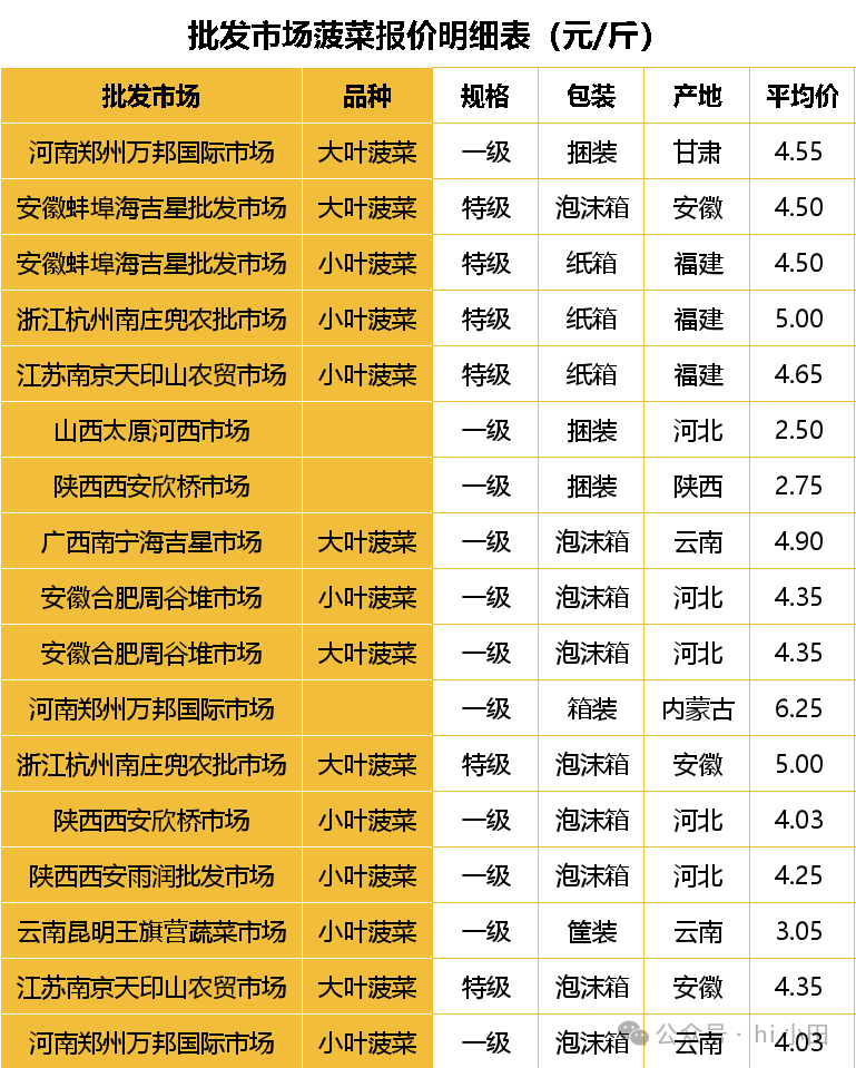 其他批发市场菠菜价格平稳。