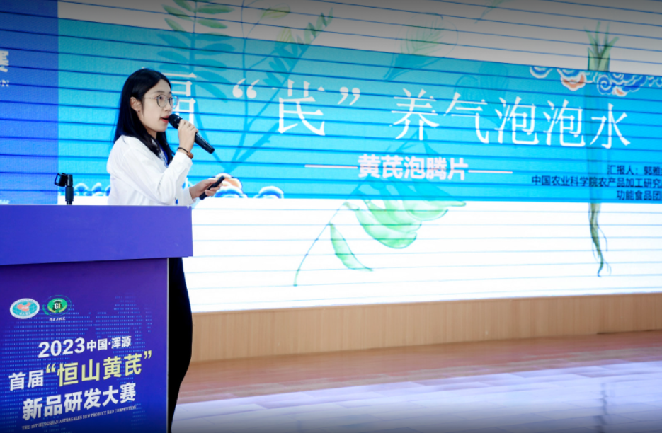 来自中国农业科学院农产品加工研究所的郭雅红代表团队分享了一款福芪养生泡泡水,这款产品从当前90后群体生活工作的市场现状出发,通过高通量膜分离技术将黄芪提取物以泡腾片的形式呈现出来,便携易用且兼具产品功能性特点。