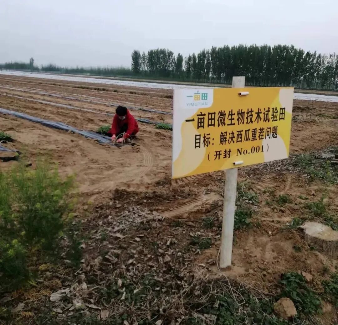 一亩田与郭教授团队合作推广的该项产品,将利用微生物菌调理土壤的原理,在种植时通过灌根的方式调理土壤环境,改变西瓜植株体内的益生菌环境,改善生长空间,防止枯萎病发生,为西瓜重茬耕种问题提供解决方案。此外,该项技术依据自然界植物生长规律,遵循生态环境学、土壤学、植物学等基本原理,以微生物肥料作用于作物生长,同时还减少化肥、农药的使用,改善土壤有机质含量,一方面提升产品的质量和品质,另一方面还有利于实现“双碳”目标。