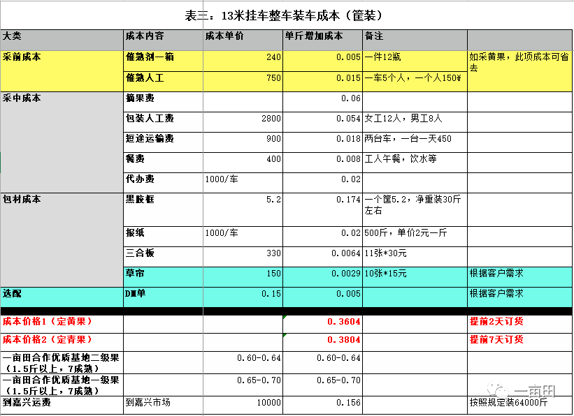 一亩田产地代采成本结构表