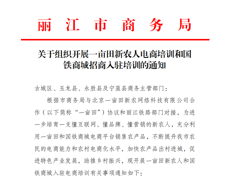 12月7日,一亩田“灯塔计划”走进云南丽江,面向当地一线农业生产者开展互联网营销技能的公益培训。按照此前丽江市商务局发布的通知要求,本次培训的任务是“进一步培育一支懂互联网、懂品牌、懂营销的新农人,充分利用一亩田电商平台销售农产品,不断提升我市农民的电商能力和农村电商化水平,加快农产品出村进城,促进特色产业发展,助推乡村振兴。”
