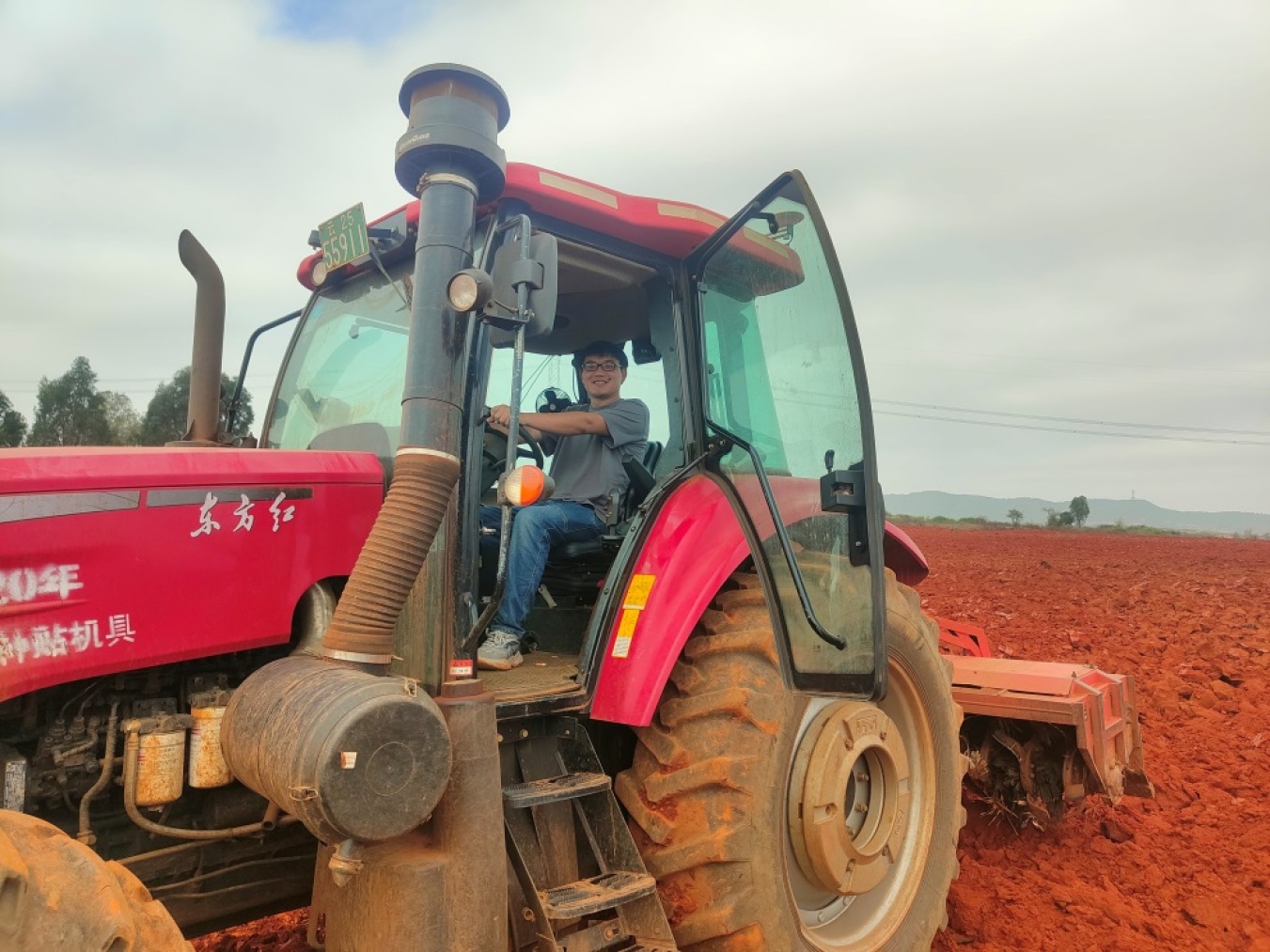 在云南省文山壮族苗族自治州砚山县平远镇莲花塘村烤烟种植连片地,数十台农机在同时开展冬耕作业,传来阵阵轰鸣声,其中一个驾驶农机的身影尤为引人注意。他就是砚山县的一位“00后”烟农付杨跃。