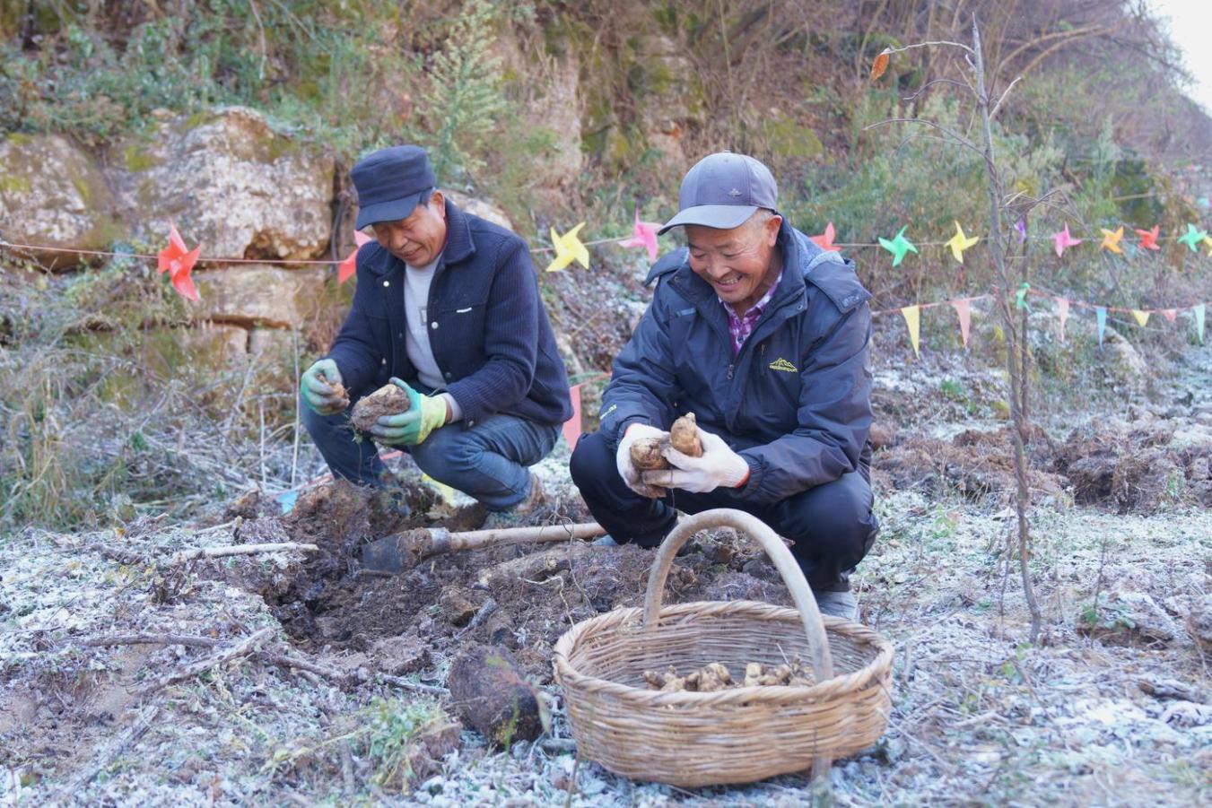 走进成县纸坊镇刘山村天麻种植基地,郁郁葱葱的林间荒坡里,村民们正忙着采挖、搬运、分拣,处处洋溢着丰收的喜悦。