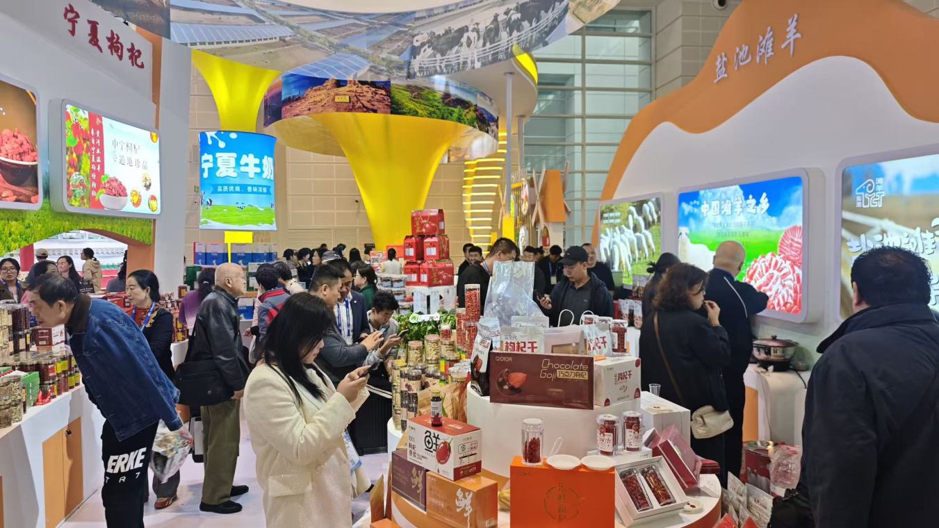 天津国际会展中心现场气氛热烈,前来咨询和品鉴的观众络绎不绝。“乡味宁夏”综合展区位于S10馆E1区域,以210平方米的开放式设计打造沉浸式黄河农业生态体验空间,重点展示了宁夏枸杞、葡萄酒、牛奶、肉牛、滩羊、冷凉蔬菜等“六特”产业,系统呈现了从种养殖到精深加工的全链条成果。灵武长枣、中卫硒砂瓜等地理标志产品也同台展出,充分体现了宁夏农业的地域特色与产业基础。现场反响热烈,来自天津的游客张建忠先生表示:“我特意来到宁夏展区参观品鉴,因为我在天津经营的店铺选用的正是盐池滩羊肉、泾源黄牛肉,以及西吉的土豆和粉条,厨师也来自吴忠。我们真正把宁夏的特色引入天津,希望让本地消费者了解和体验宁夏的美食!”