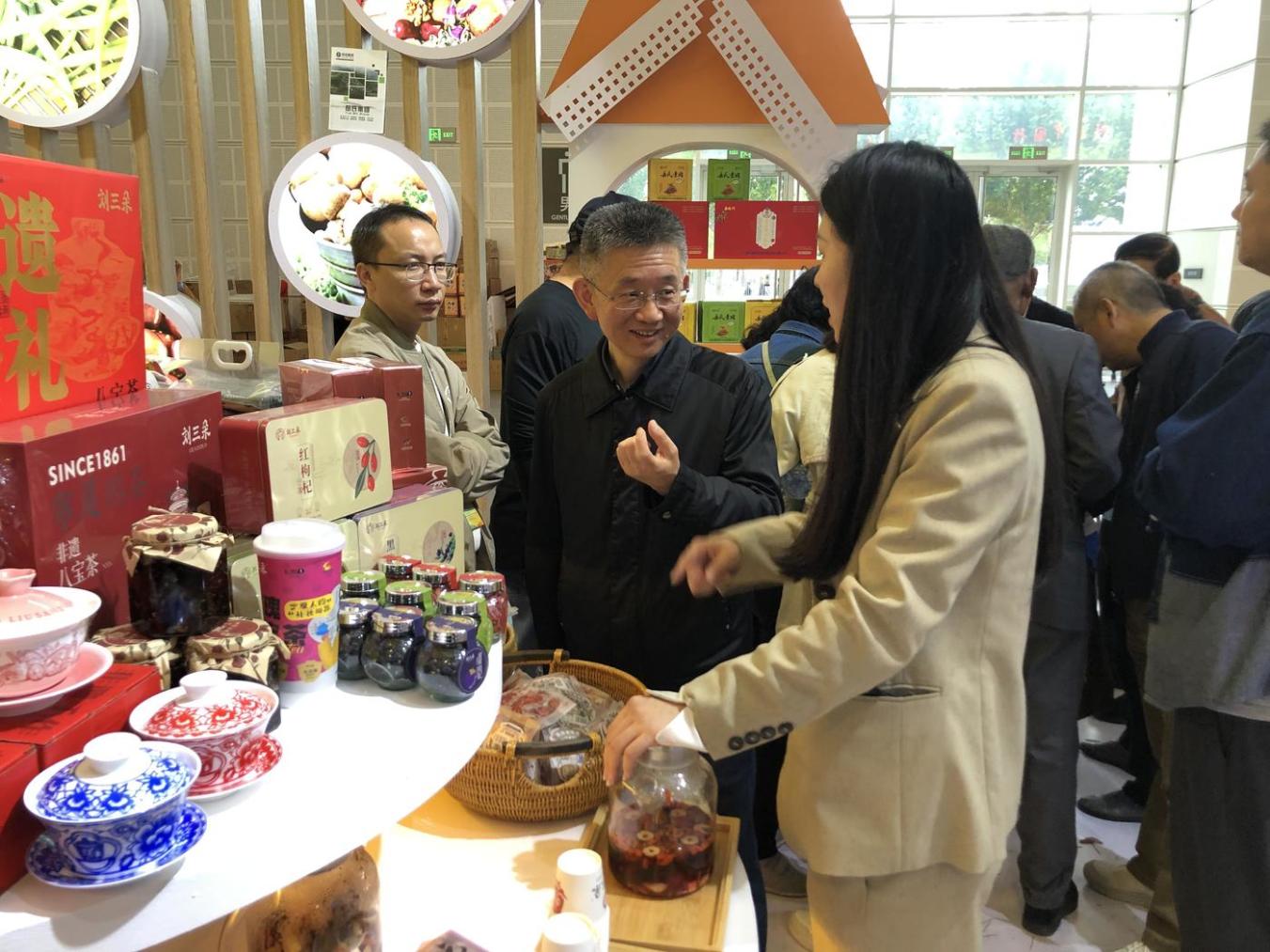 为增强互动体验,宁夏展区积极参与大会“丰收盲盒”兑换活动,将非遗八宝茶、优质枸杞等产品融入其中,通过“线上引流+线下体验”的方式吸引观众参与,进一步提升宁夏农产品的影响力。宁夏刘三朵八宝茶参展负责人杨薇热情地向记者介绍:“非常荣幸能参与本次农交会,我们带来了精心挑选的‘浪·宁夏’八宝茶和新设计的宁夏盖碗产品,受到了顾客的广泛好评。同时,我们还参与了‘丰收盲盒’兑换活动,获奖顾客均可获得我们的八宝茶赠品,希望更多人喜爱和关注宁夏茶饮!”