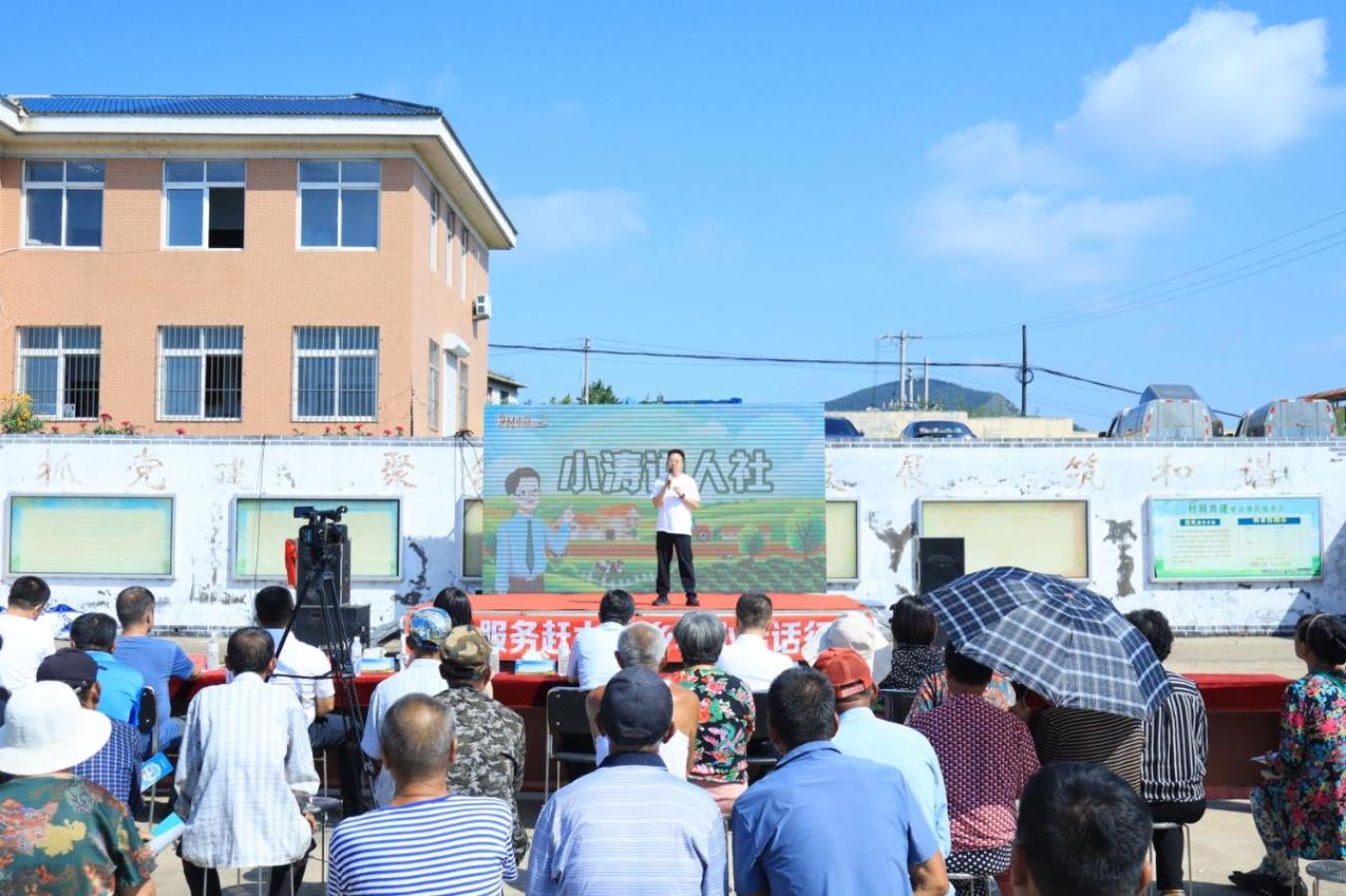 活动现场,由九龙街道选调生和瓦房店市人力资源和社会保障局自编自演的情景剧《社银合作惠万家》,用生动诙谐的表演展现了“银行网点就能办社保业务”的便民服务场景,让村民在欢声笑语中了解人社系统行风建设成效。