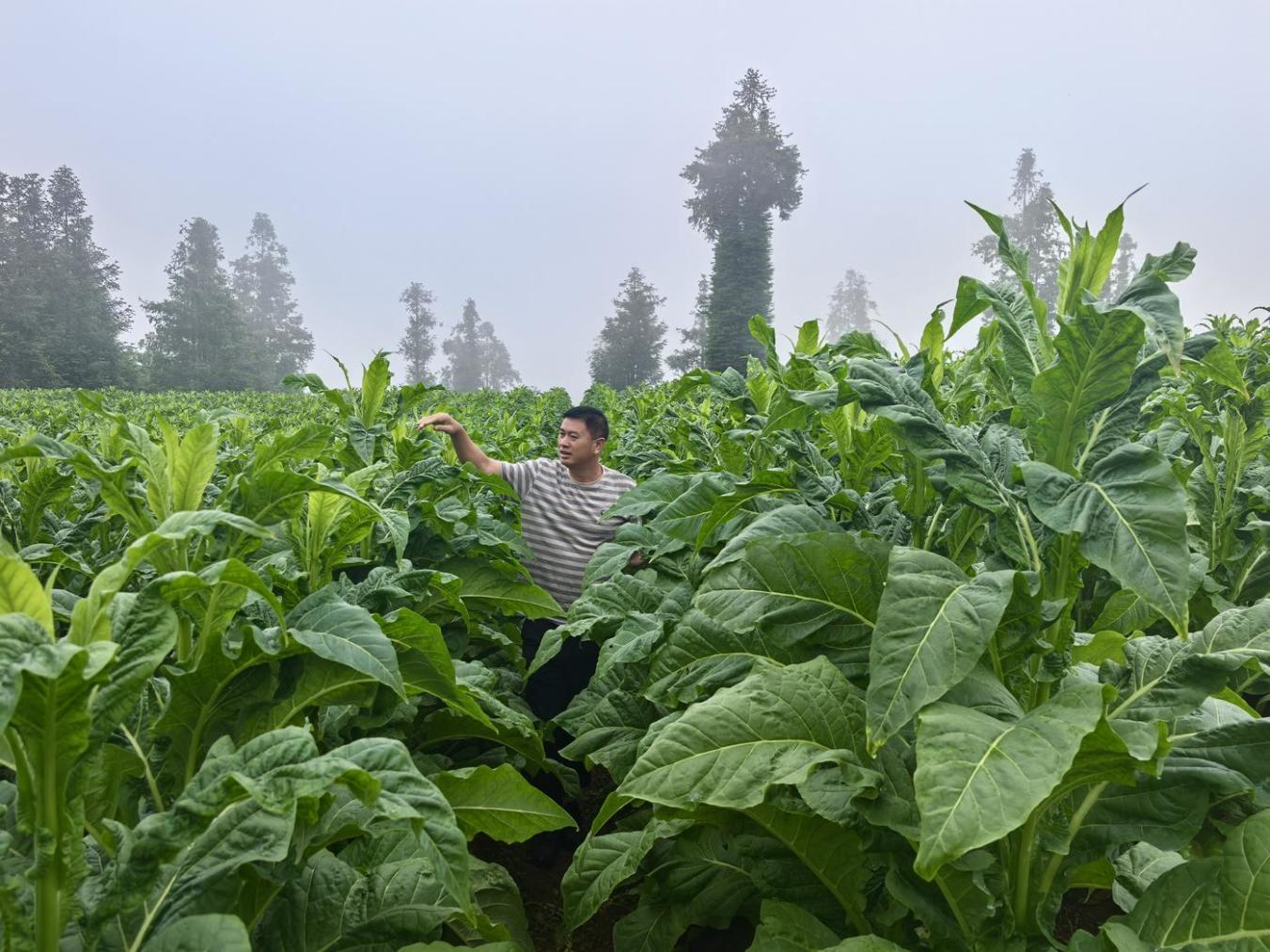 炎炎烈日下,在云南省文山壮族苗族自治州麻栗坡县的百亩连片烟田里,麻栗镇烟叶收购站网格员马林正蹲在一垄烟株旁,细致观察着叶片的纹路与色泽。“水肥要跟上,这几株有点‘营养不良’,得马上精准‘加餐’了。”