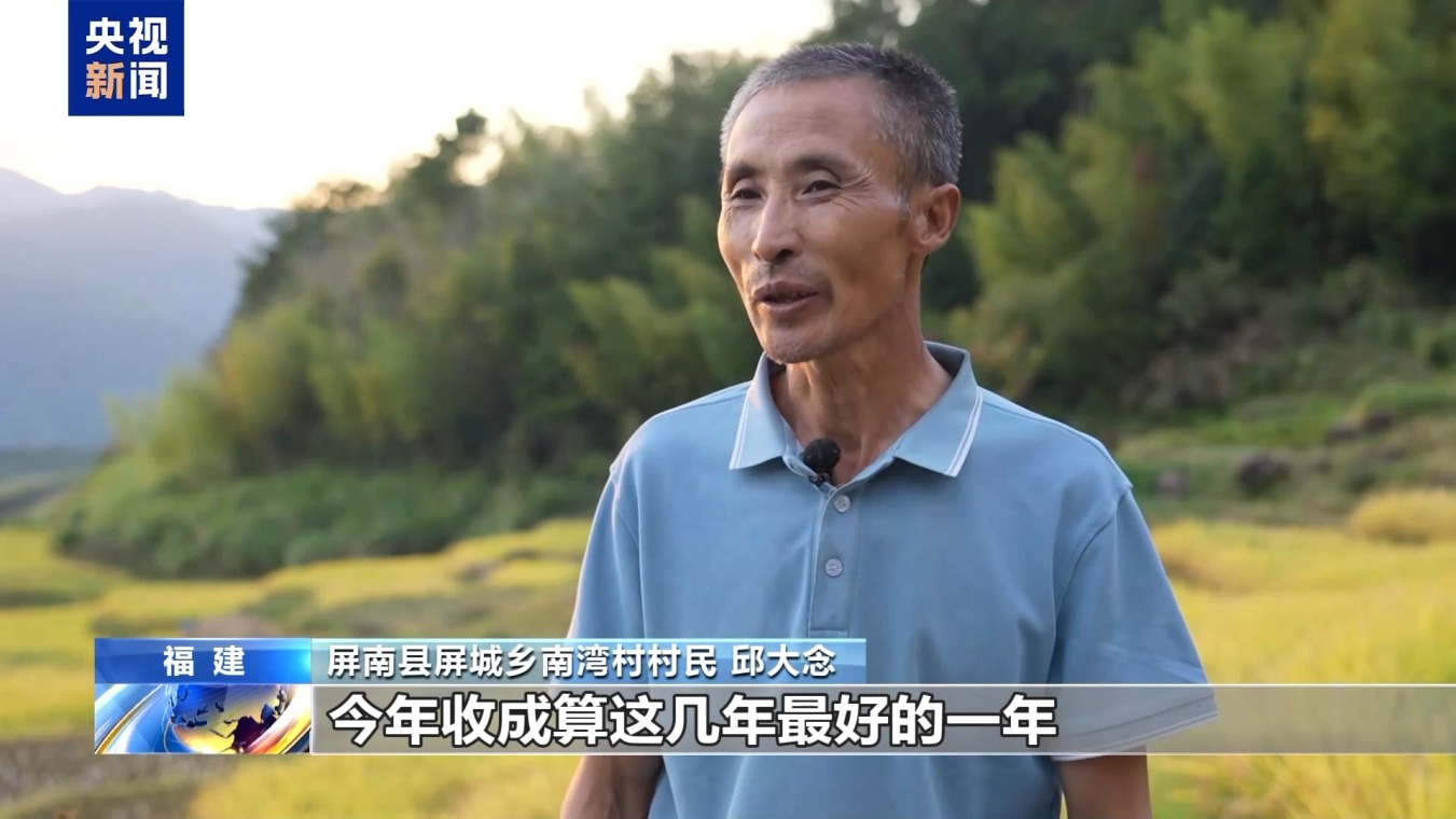 屏南县屏城乡南湾村村民 邱大念:今年收成是这几年最好的一年,亩产杂交水稻可能要到1100斤左右。