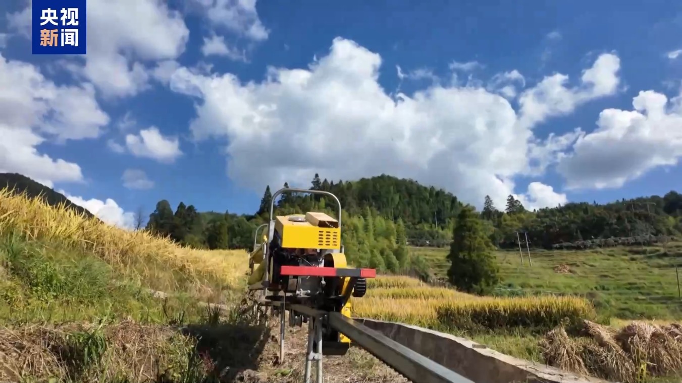 依靠技术、专业知识,邱桂敏这样的新村民,正在改变南湾村千百年来的传统耕作方式。打稻子用上了小型打谷机,而在田间穿梭运送稻谷的轻轨,更是让人眼前一亮。