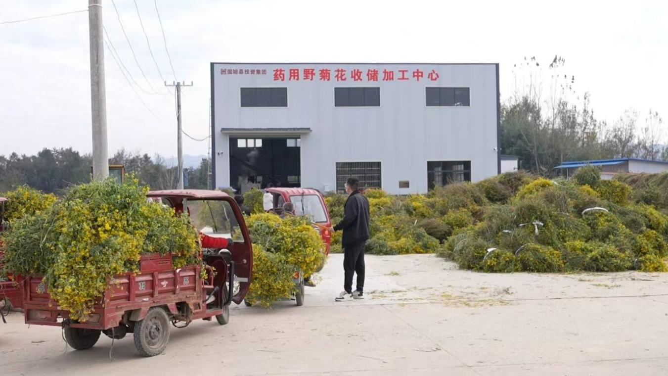 沿着乡道走进段集镇乐道冲村,青山坡地、房前屋后的野菊花迎风摇曳,村民们挎着竹篓收割转运,一派繁忙景象。野菊花一次栽种可年收两三茬,持续收益三至五年,易管理、抑杂草、价格稳,而固始县纬度恰好适宜其生长。2023年,信阳农林学院借驻村帮扶契机推广药用野菊花种植。如今,该县在乐道冲村建有3个育苗基地共80亩,免费发放种苗800多万株,还与药厂签订协议,让村民种得放心、卖得安心。