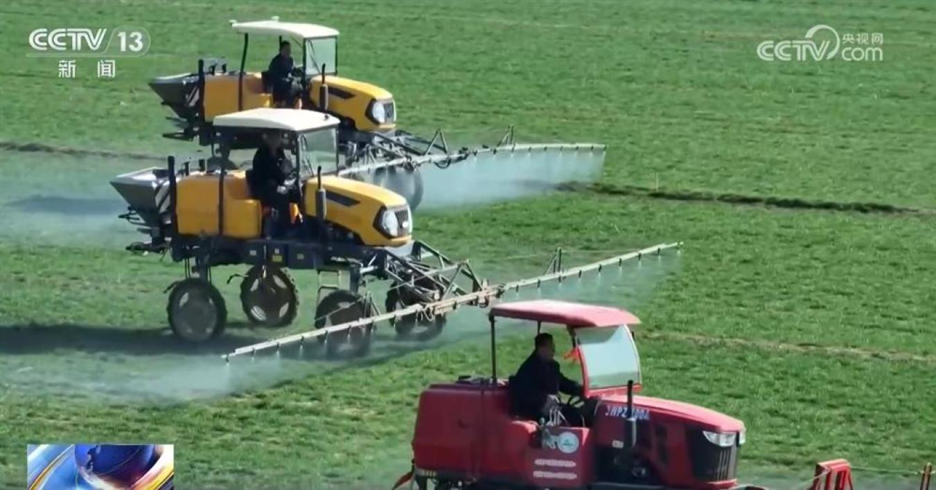 河北石家庄的430万亩冬小麦已全部返青,在藁城区北营村的麦田里,5台自走式打药机正开展喷洒作业,和往年不同的是,它们配备了北斗自动导航驾驶系统,能够边作业边进行相关信息的记录。