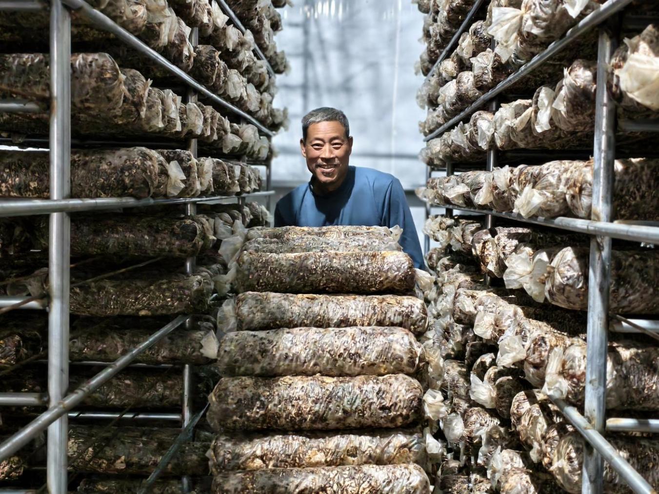通过“技术指导、金融服务、农业保险、保底收购”的全链条服务模式,包信镇让企业安心扩规模、搞加工,农户放心投劳力、增收入。陈松国就是最早一批受益者,2024年他投资了5万棒香菇菌棒,谈起收益满脸喜色:“有公司技术员免费指导,育出的菌棒和成品香菇还能回收,跟着干踏实,能挣钱!”