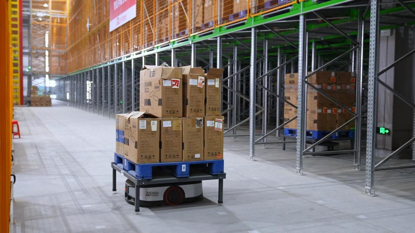 “春节我们一天没休,一直这个节奏。”京东物流园总经理付晓明说。园区4栋12米高的智能仓里,上层托盘车自动存、下层“地狼”帮着拣,分拣效率是人工的3倍多。
