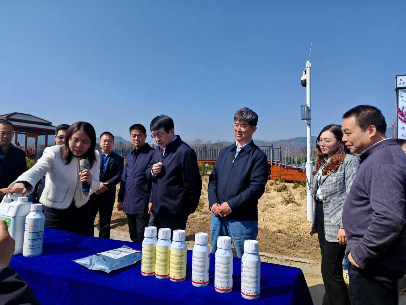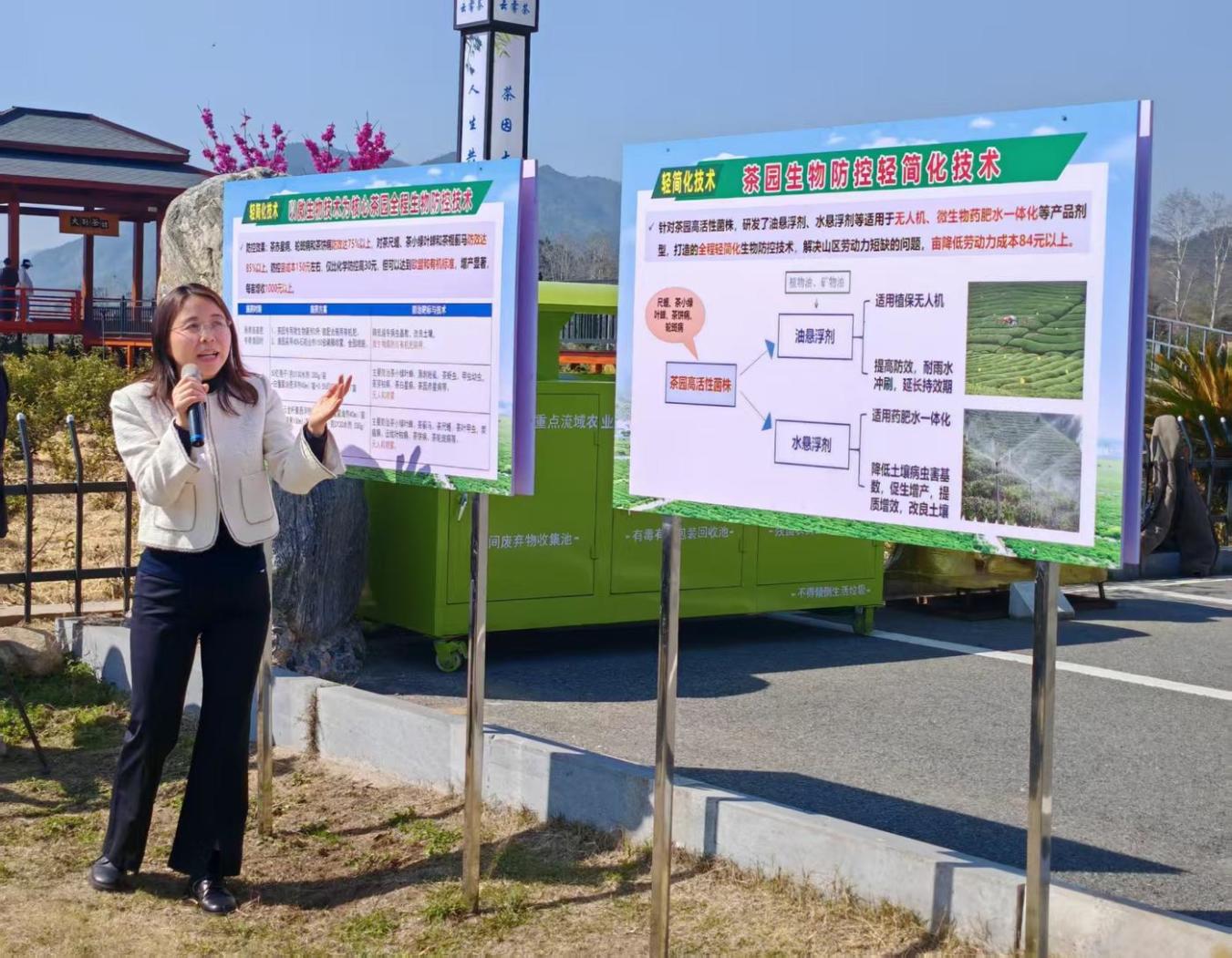 活动现场,与会代表观摩了茶园专用微生物新产品示范效果、微生物药肥水一体化技术展示、茶园无人机喷施微生物农药技术展示、茶园数字化生物防控平台演示等。全国人大代表、湖北省农科院生农中心副主任刘晓艳宣讲全国两会精神。