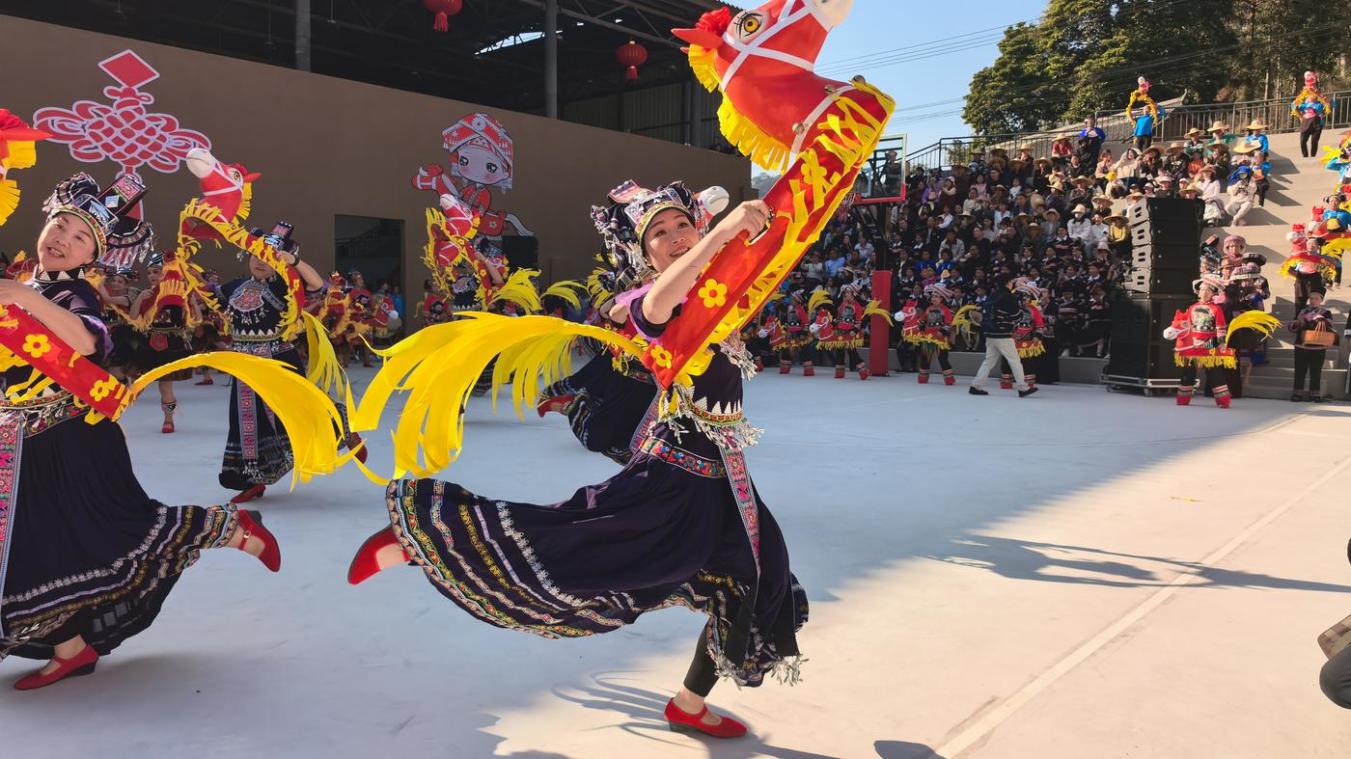 鼓声、歌声跃过了家家户户门前的大红灯笼,飞过院里正在准备的年猪,伴着木臼里传来节奏有力的冲击声,与纸马舞的热闹舞蹈交织在一起,构成了边疆村落特有的新春交响。一匹匹纸马,承载着人们对美好生活的向往;欢快的舞蹈,跃动着民族团结的强劲脉搏。在马关、在马白镇、在马洒,这项古老的非遗民俗,在新时代焕发出新的活力,它不仅是年味的象征,更是各民族交往交流交融、共同创造幸福生活的生动见证。在这辞旧迎新的时刻,人们用传承千百年的舞步,跳出了对春天的期盼,跳出了边疆地区的安定祥和,更跳出了中华民族一家亲的和谐乐章。
