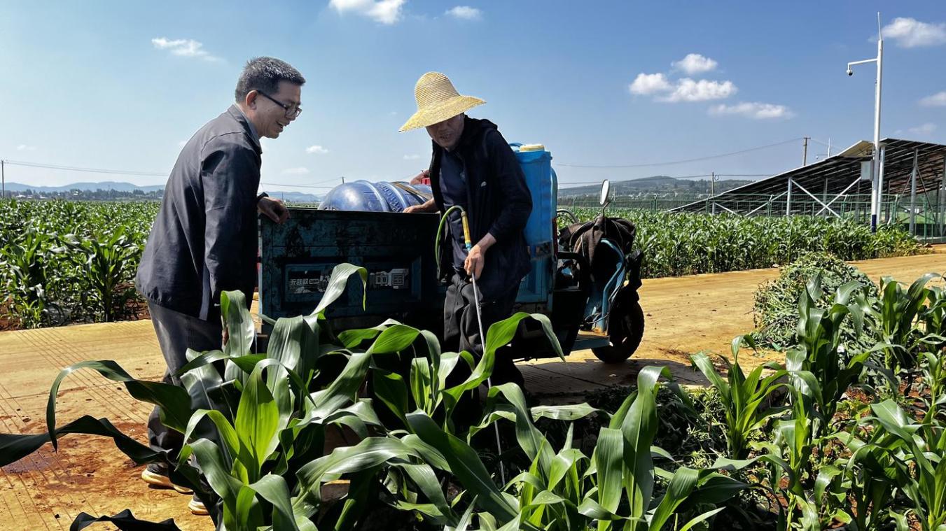 云南省曲靖市宣威市是全国产粮大县,2024年全年粮食总产量为82.84万余吨,比2023年增产8442吨。近年来,宣威市通过加快建设高标准农田,挖掘现代种业潜力,推广种植集成技术,推进单产提升行动,有效实现了“藏粮于地、藏粮于技”,粮食总产保持稳中有升。图为宣威市农业农村部门技术人员在指导农民田间杂草防治。