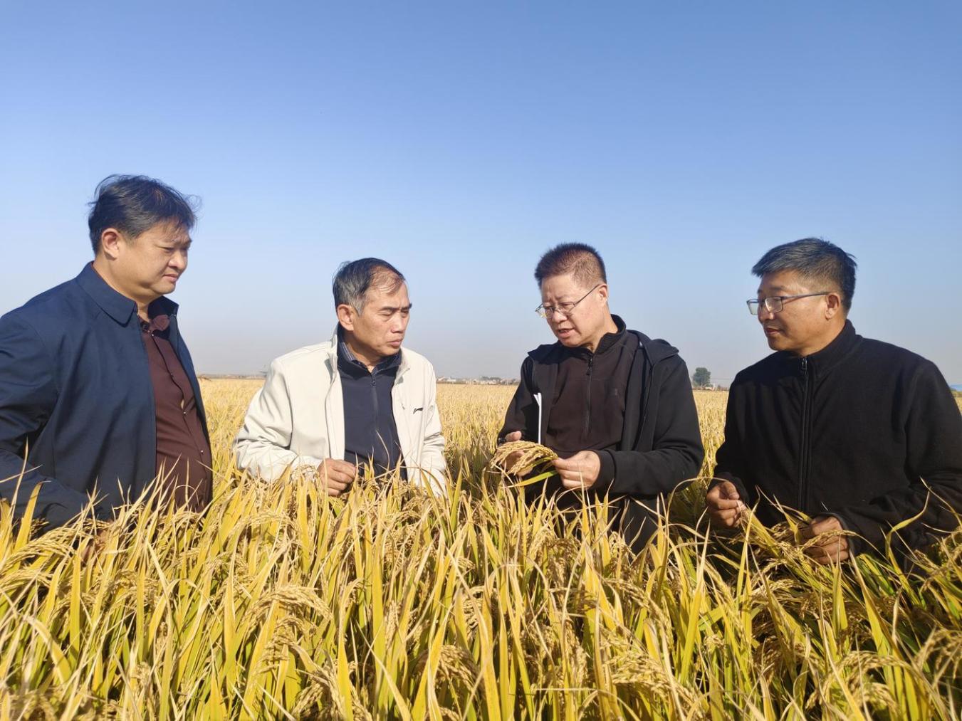 专家组严格按照科学测产方法,在核心区每个品种随机选取3块田(每块不少于1亩),经联合收割机实收、称重、扣除杂质,并按14.5%标准含水率折算,最终得出上述产量。专家组一致认为,项目核心区田间长势均衡,植株健壮,群体结构合理,病虫害轻,丰产性突出,该技术模式对实现水稻大面积单产提升效果显著,建议加快示范推广。