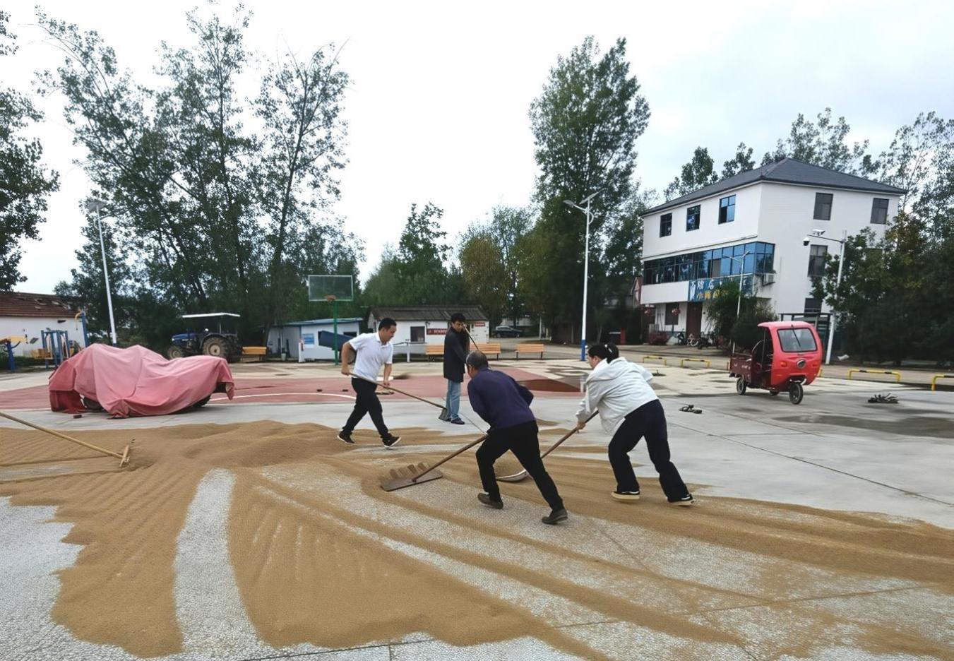 而不久前夏庄镇陈楼村的村民们还在为粮食晾晒的事儿犯愁。当时持续阴雨缠缠绵绵,刚收割的水稻裹着潮气,找不到晾晒地方,大伙围着网格员董培急得团团转。