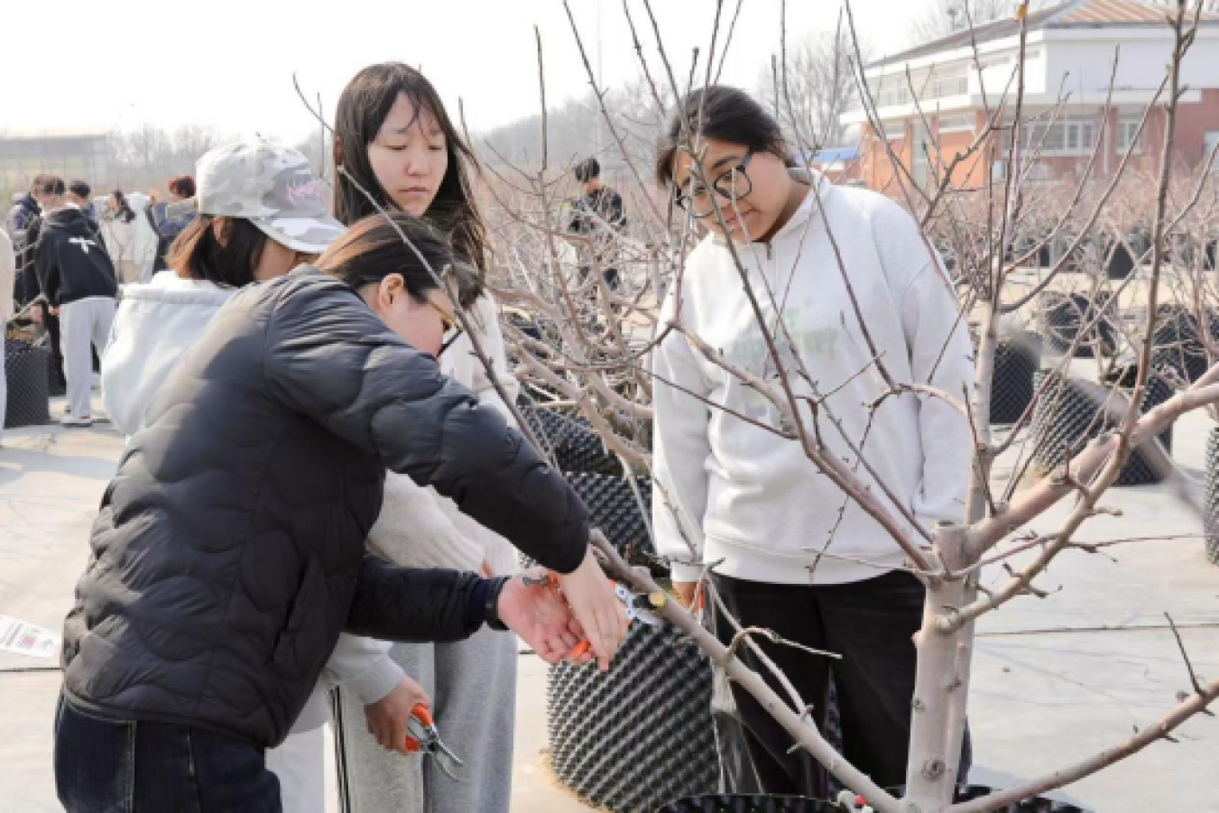 三月的北农,春色正好,万物向新。近日,在植树节到来之际,北京农学院师生立足学科专业特色,聚焦校园果树修剪养护实操、树木常见病害防控方法,开展“植此青绿,护木焕新”植树节耕读实践主题活动,引导学生将专业知识与生态实践深度融合,以青春力量助力美丽校园与生态环境建设。