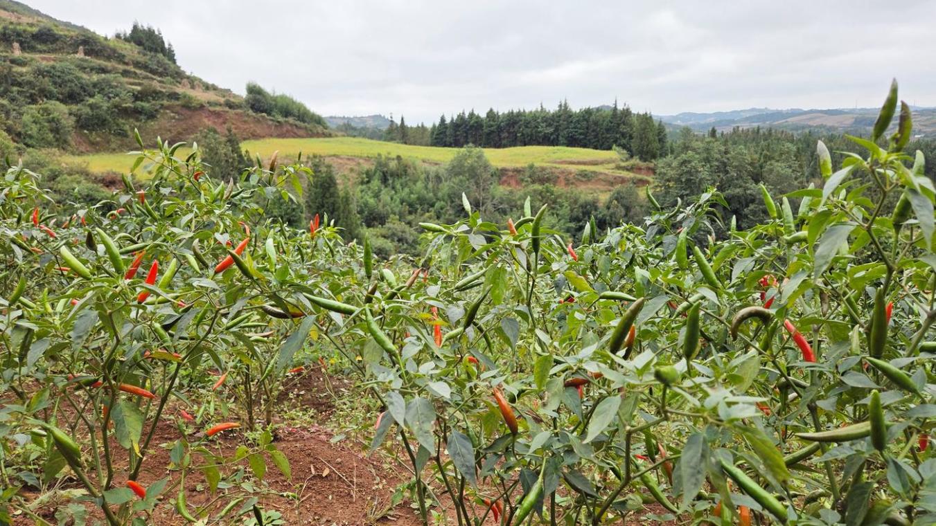 昔日杂草丛生的荒坡,如今披上了“绿毯”,挂满火红辣椒,成了山里一道别致的风景。村民们曾经提起便皱眉头的山坡地,如今变成了增收的“希望田”。