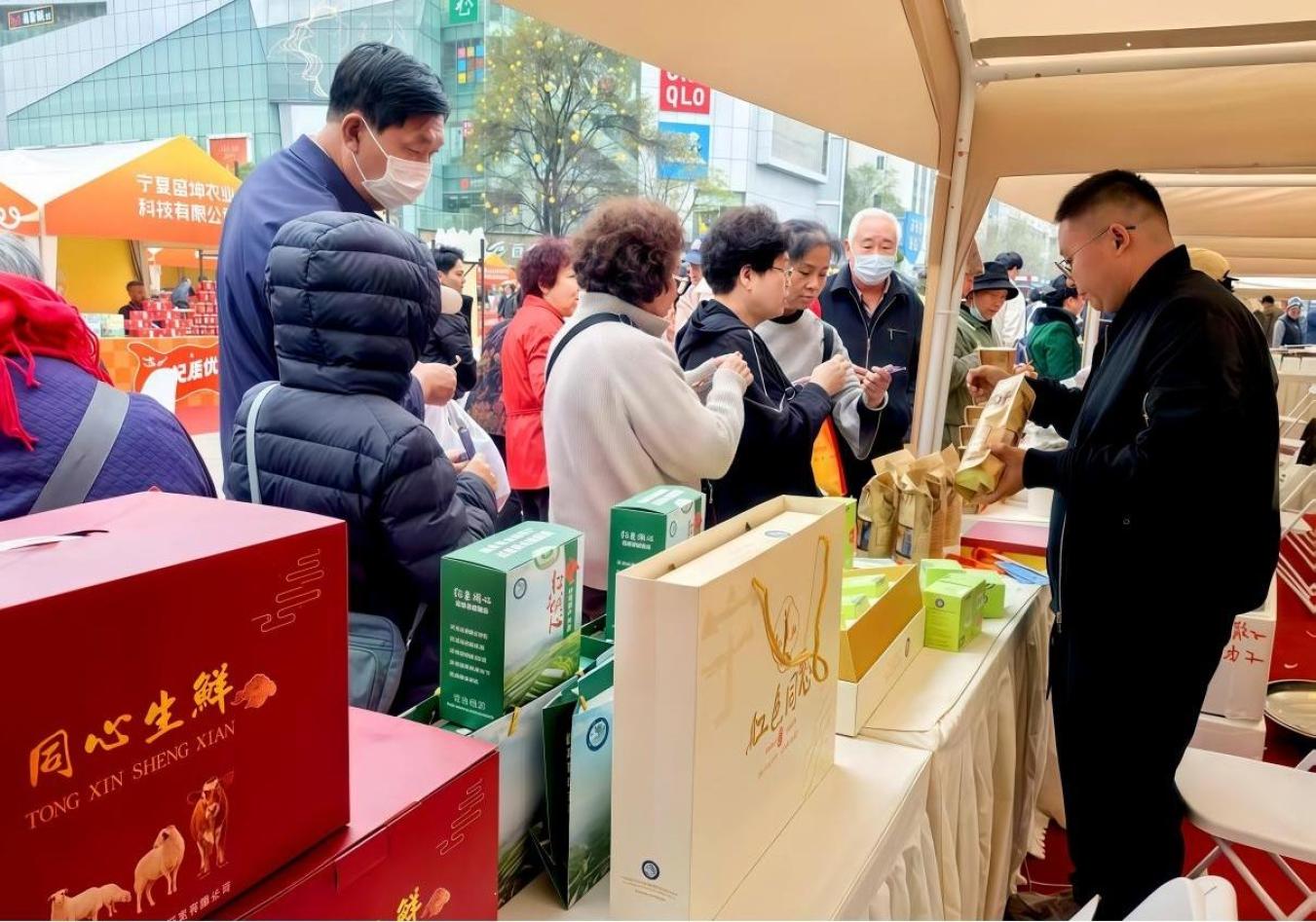 近日,宁夏同心县农特产品展销推介会在云南省昆明市南屏步行街中央广场顺利举办。本次展销推介会以“丝路相通、同心同行”为主题,同心县36家优秀农特企业携百余款农特产品亮相“春城”昆明,重点展示推介了同心滩羊肉、牛肉、枸杞、马铃薯、优质粮油等名优农特产品和精深加工制品。活动旨在通过宣传推介、品鉴互动等形式,擦亮宁夏同心县农特产品品牌,不断提升乡村产业发展水平。