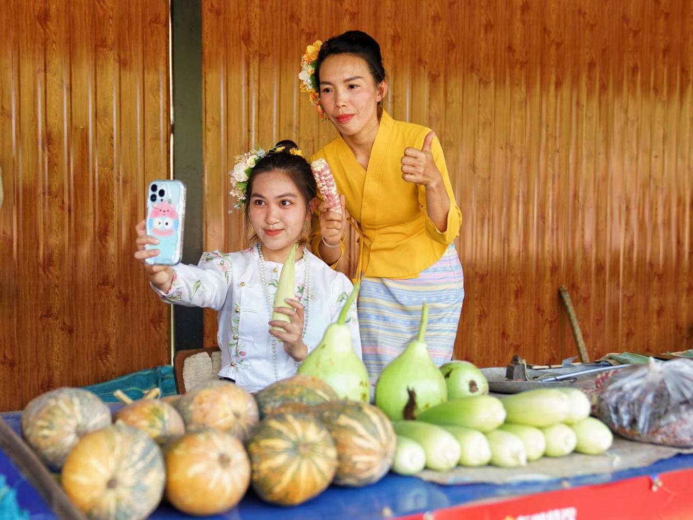 从“村寨脏乱不讨喜”变“诗画家园迎客来”。曾经,勐哈村内污水横流、柴草乱堆,现在,在“党建+口岸经济促农增收”乡村振兴示范带深入建设下,勐哈村积极鼓励1300余户村民自筹资金、投工投劳打造村寨,曼广村民小组稻田旅拍、曼别村民小组创意庭院等网红打卡点相继涌现,村民还以“六尺巷”精神主动让出部分宅基地用于扩路,打通发展“毛细血管”。随着“赶摆”经济火热出圈,美丽村寨吸引游客27.5万余人次,为村民增收创收446万余元。村民依应香站在自家傣装店前,笑得合不拢嘴:“风景好了,不少游客跟着小红书来打卡拍照,我家傣装生意都爆单了!”