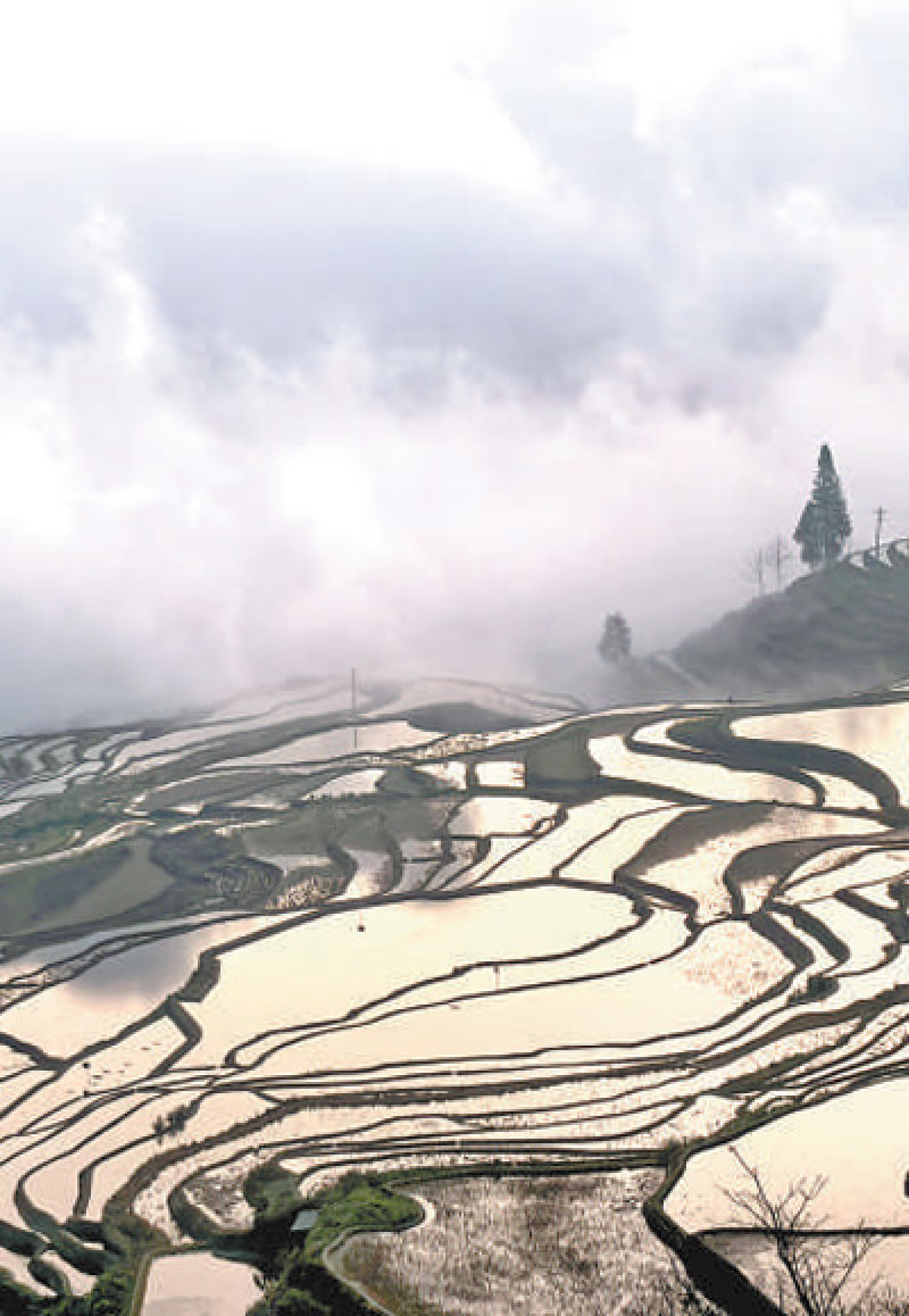 清风拂过,云开雾散,位于云南红河哈尼族彝族自治州的元阳哈尼梯田慢慢露出真容。