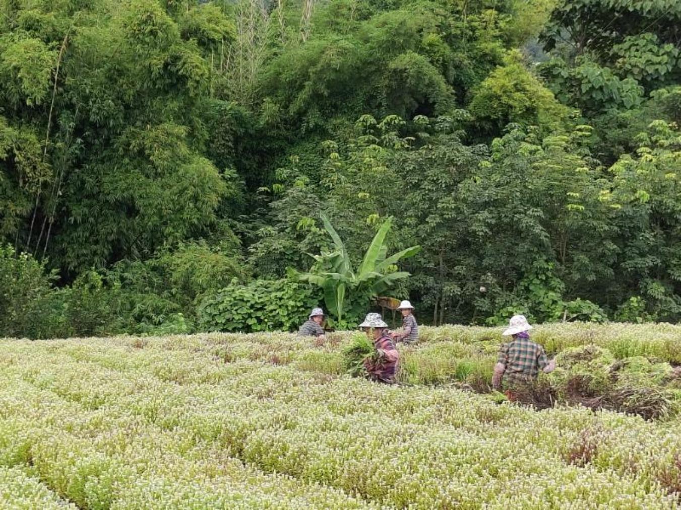 目前,跳蚤草在勐腊县的种植规模达2000亩,集中分布在曼纳伞村、巩丙新村、大卡老寨等7个村寨,形成山地散播、田地栽培、橡胶+跳蚤草立体种植三种模式。其中,田地栽培模式实现轮作增效,每年5月种植、10月收割,其余6-7个月可轮种一季西瓜、一季豆类,大幅提升了土地利用效率。