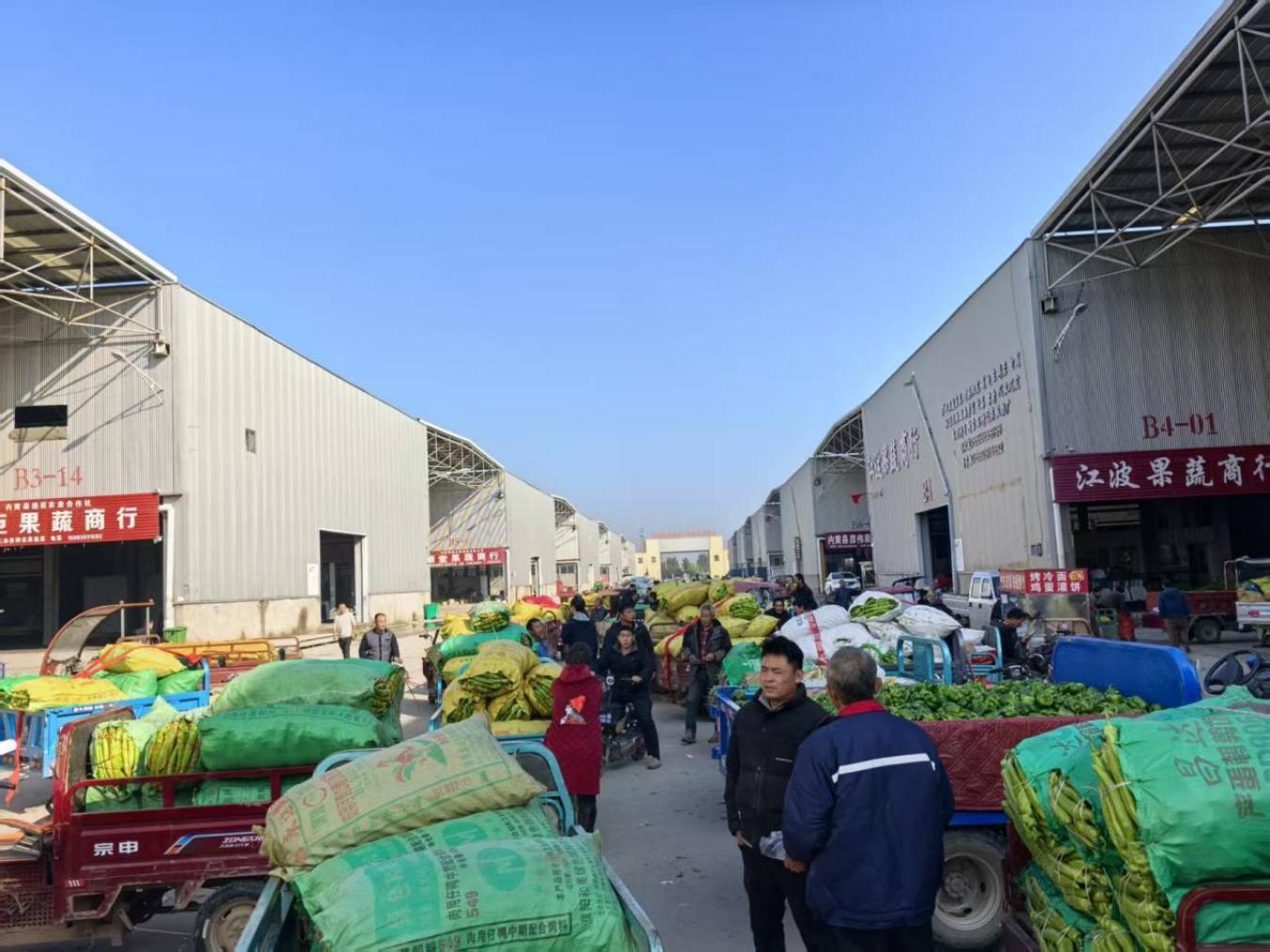 内黄是豫北重要的蔬菜生产基地,依托当地资源优势,建设产地专业市场,为传统农区探索一条乡村振兴新模式。经过10余年的发展,该地果蔬城吸引1500余家企业、商户入驻,服务农户超5.5万户,交易品类达50余种,已打造成集展示、交易、仓储、冷链、加工于一体的“产地+中转集散中心”。