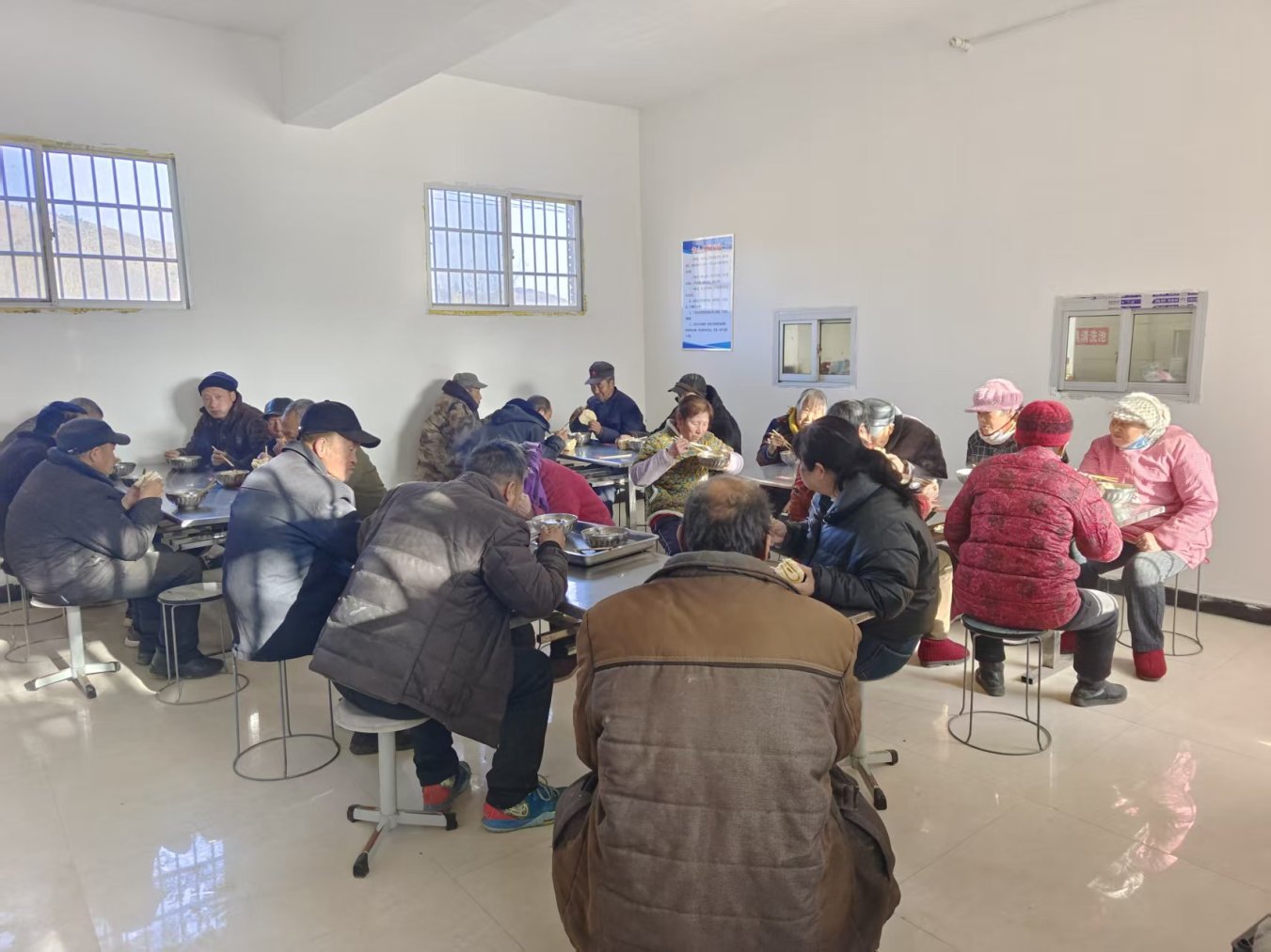 “不够再去盛一碗呀,大娘!”杜关镇杜荆村党支部书记甄建中热情招呼着,“山里冬天冷,很多老人一天就吃两顿饭。今年,在民政部门帮扶下,先将餐厅进行修缮、又购买安装了新的灶具。现在每天基本能有20位老年人来吃饭,每个老人每月交200元,不够的部分由集体经济收入补贴。一天两顿热乎饭,老人幸福度晚年。”