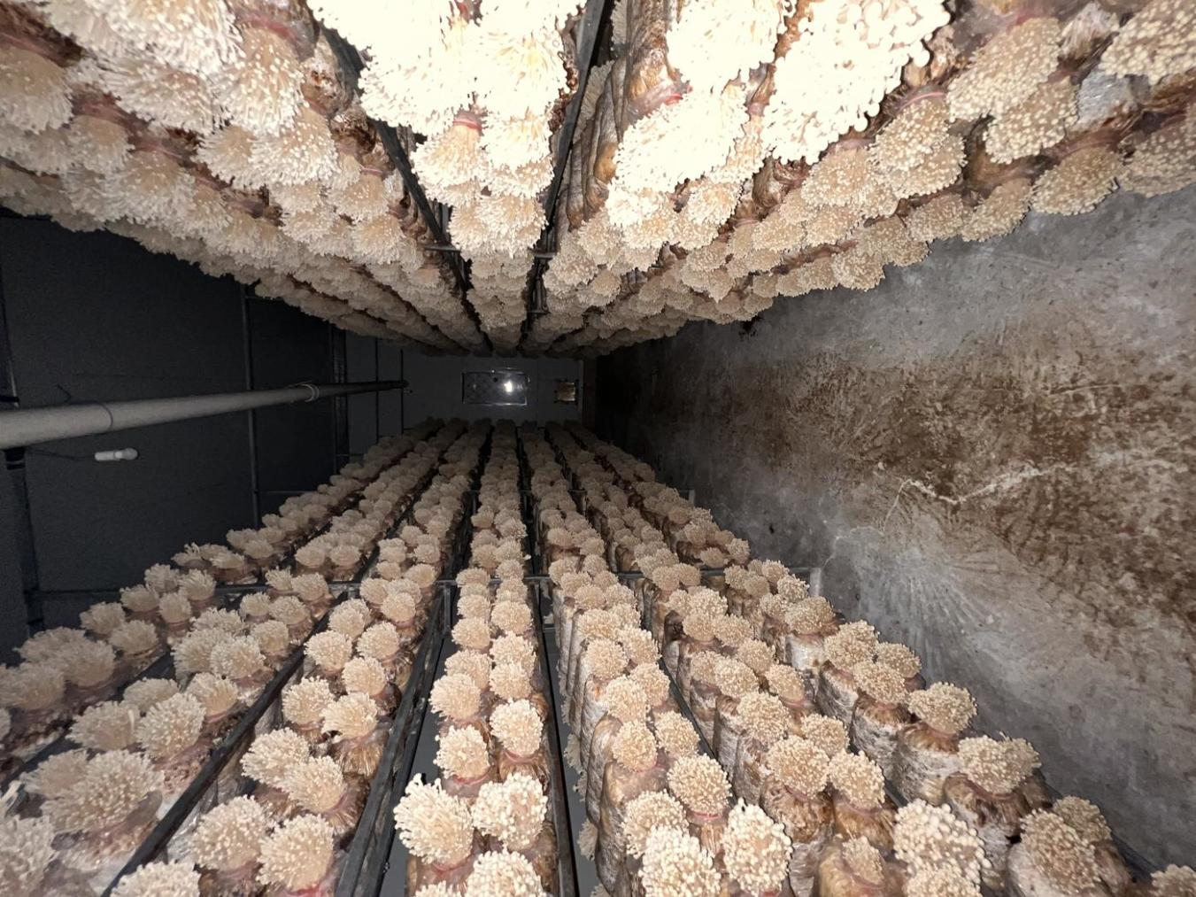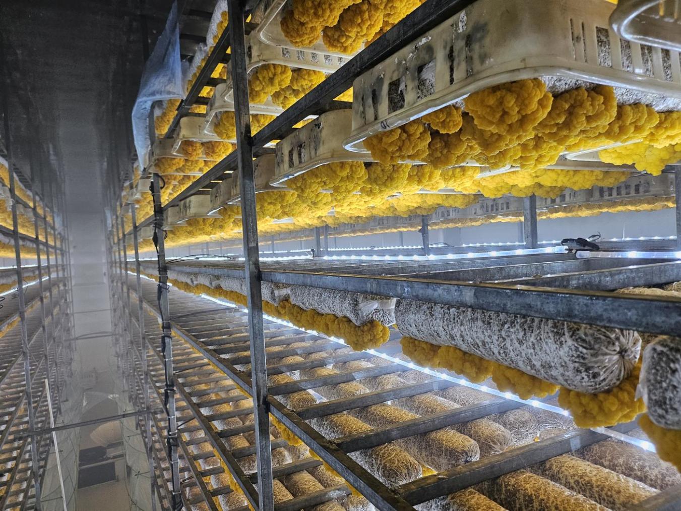 昆明市嵩明县菌视界公司金耳工厂化车间一隅。