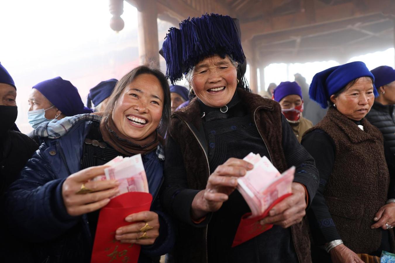 3月14日,云南省红河哈尼族彝族自治州元阳县新街镇爱春村委会阿者科村举行“阿者科计划”第十三次分红大会。全村65户村民共领取分红资金55.4万元,户均分红8523元,最高单户分红10000元。自2018年计划实施以来,该村已累计分红400.66万元,户均累计增收61640元,其中42户实现全额分红,每户累计达72040元。