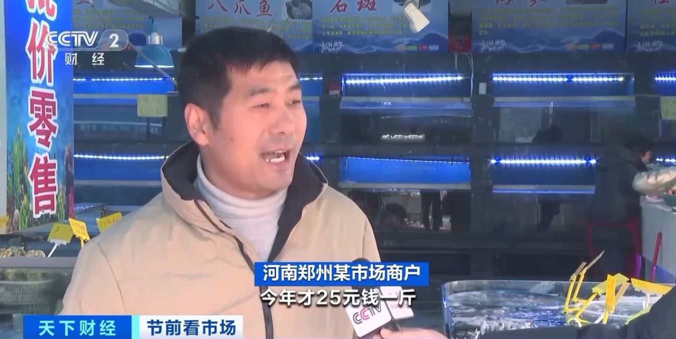 河南郑州某市场商户:去年多宝鱼卖每斤50元左右,今年才25元一斤。