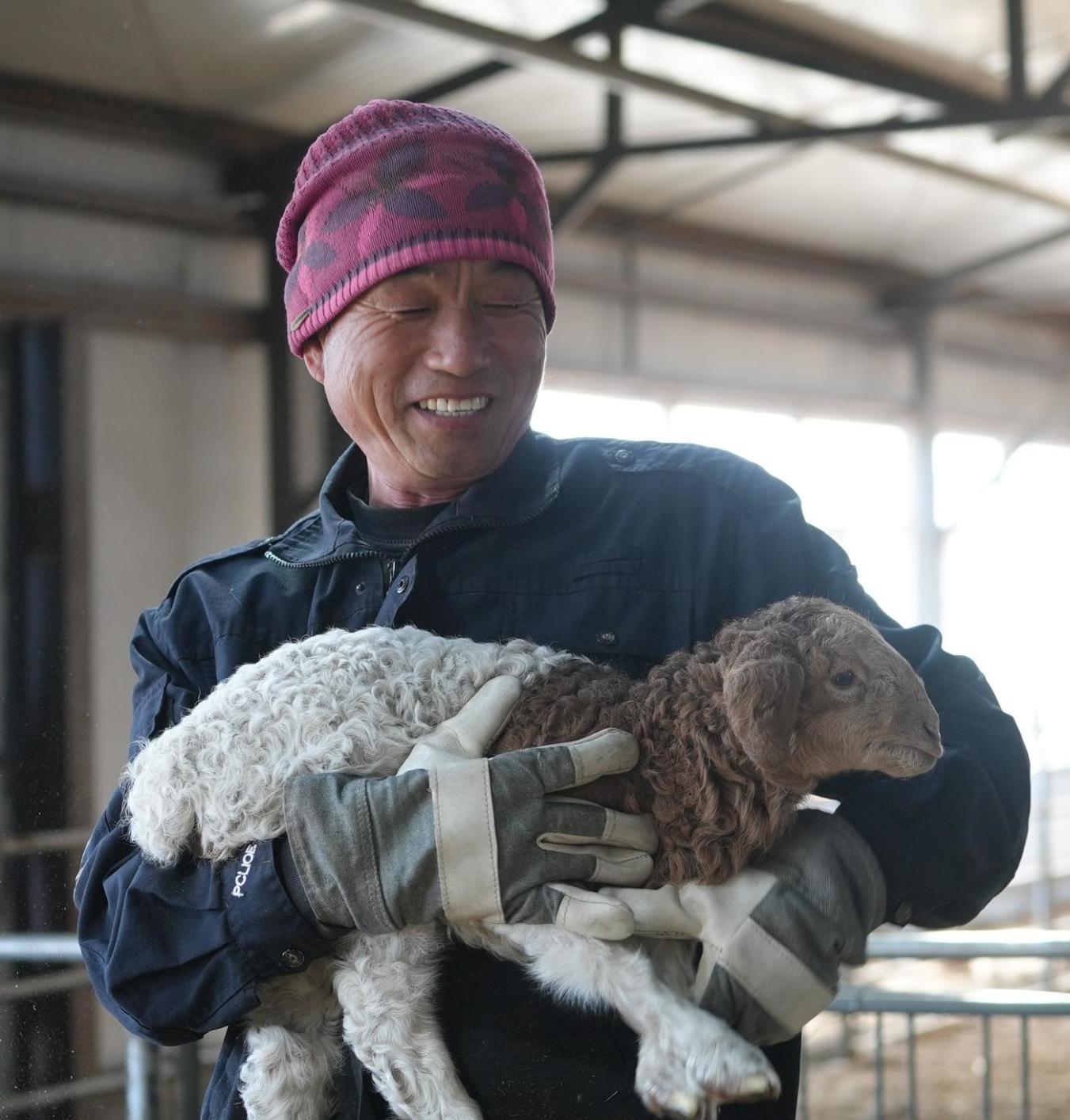 走进养殖户徐勇的暖棚,只见一群刚断奶的小尾寒羊羔羊毛色光亮、活蹦乱跳。徐勇正跟着农牧场的兽医团队,为羔羊做健康检查。“你看这些小家伙,都是双胞胎、三胞胎!”徐勇自豪地告诉记者,他家的120只基础母羊今年全部采用“两年三产”技术,目前已产羔400余只,成活率高达97%。“养双羔比单胎效益翻番还不止,羔羊三十来斤就能出栏,一年下来能卖十来万块!”