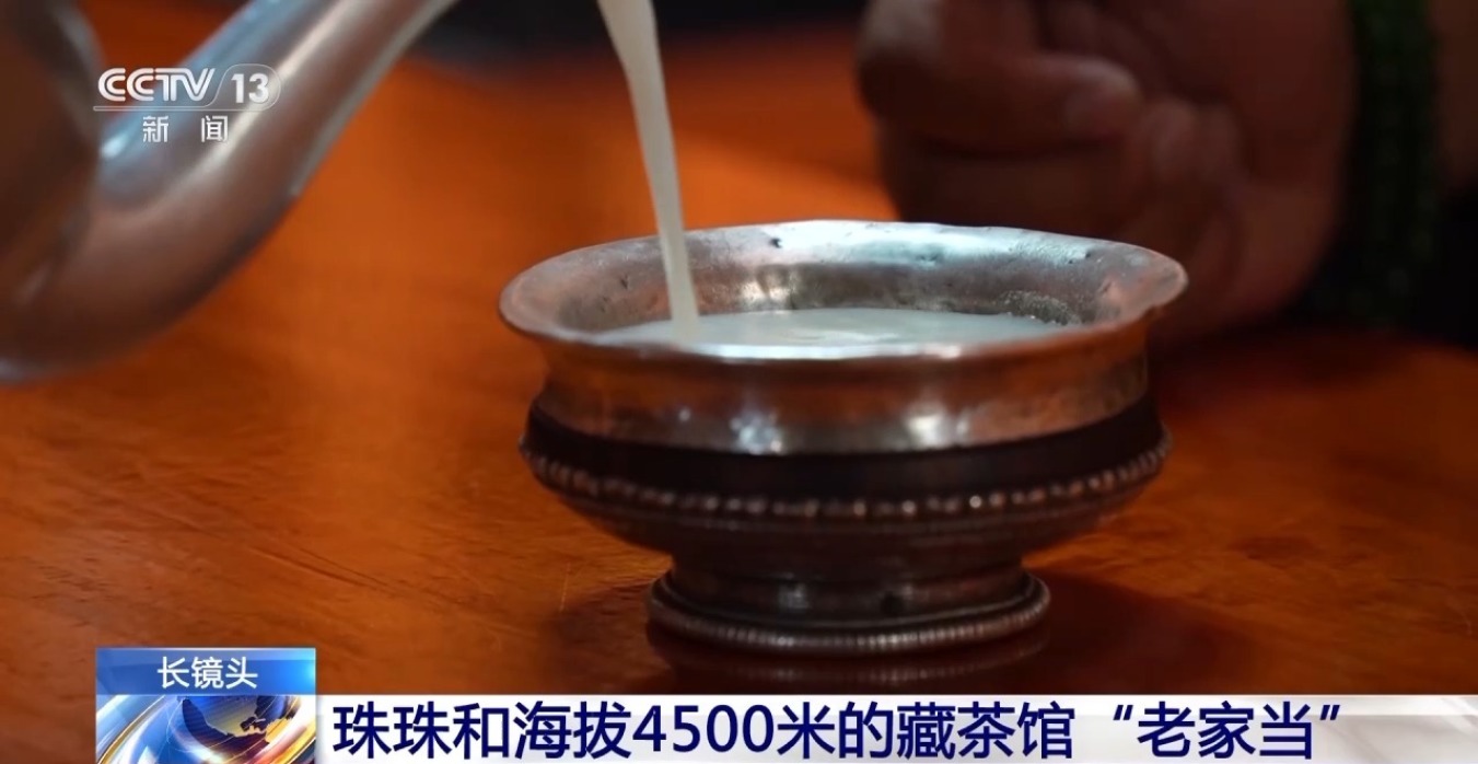 在带记者欣赏民俗物品、触摸历史的同时,珠珠也邀请记者像藏族同胞一样,喝上一杯热腾腾的酥油茶。