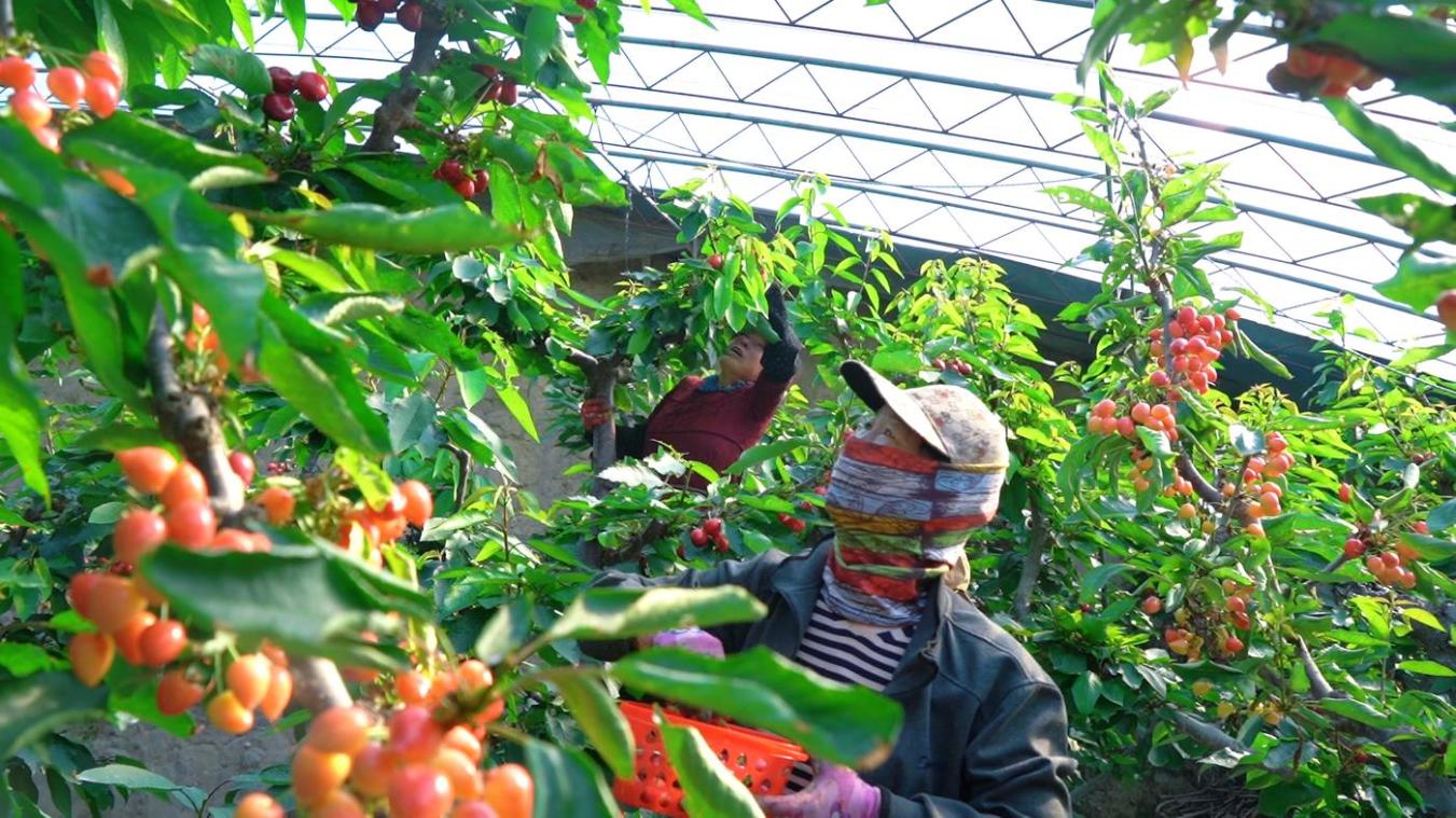 党员带头试种,从零摸索技术。村里引进北方温室适宜品种,利用本地昼夜温差大、光照充足的优势,精准调控大棚温湿度、光照和水肥。首批试种的樱桃、蓝莓顺利挂果,色泽鲜亮、口感清甜的果实一经上市便广受青睐,可观效益点燃了村民参与热情。如今,该村已建成180亩樱桃、蓝莓基地,盛果期亩产可达2000斤,按每公斤60元的批发价计算,亩均产值高达6万元,是传统作物收益的数倍,真正实现“一亩园胜过十亩田”。