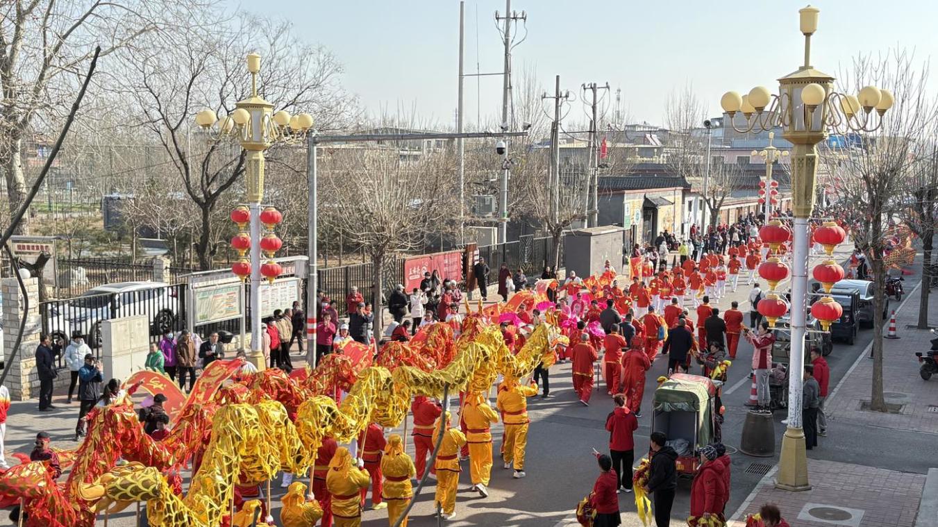 春风送暖,万象更新。3月20日,农历二月初二“龙抬头”,北京市大兴区黄村镇三间房村里锣鼓喧天,龙腾狮舞。一场以“龙腾祥瑞起,马跃启新程”为主题的二月二龙抬头民俗花会踩街活动在这里火热上演,不仅为古老的节日增添了浓郁的喜庆色彩,更生动诠释了“文艺赋美乡村”的基层实践,展现了文化振兴驱动乡村全面发展的勃勃生机。