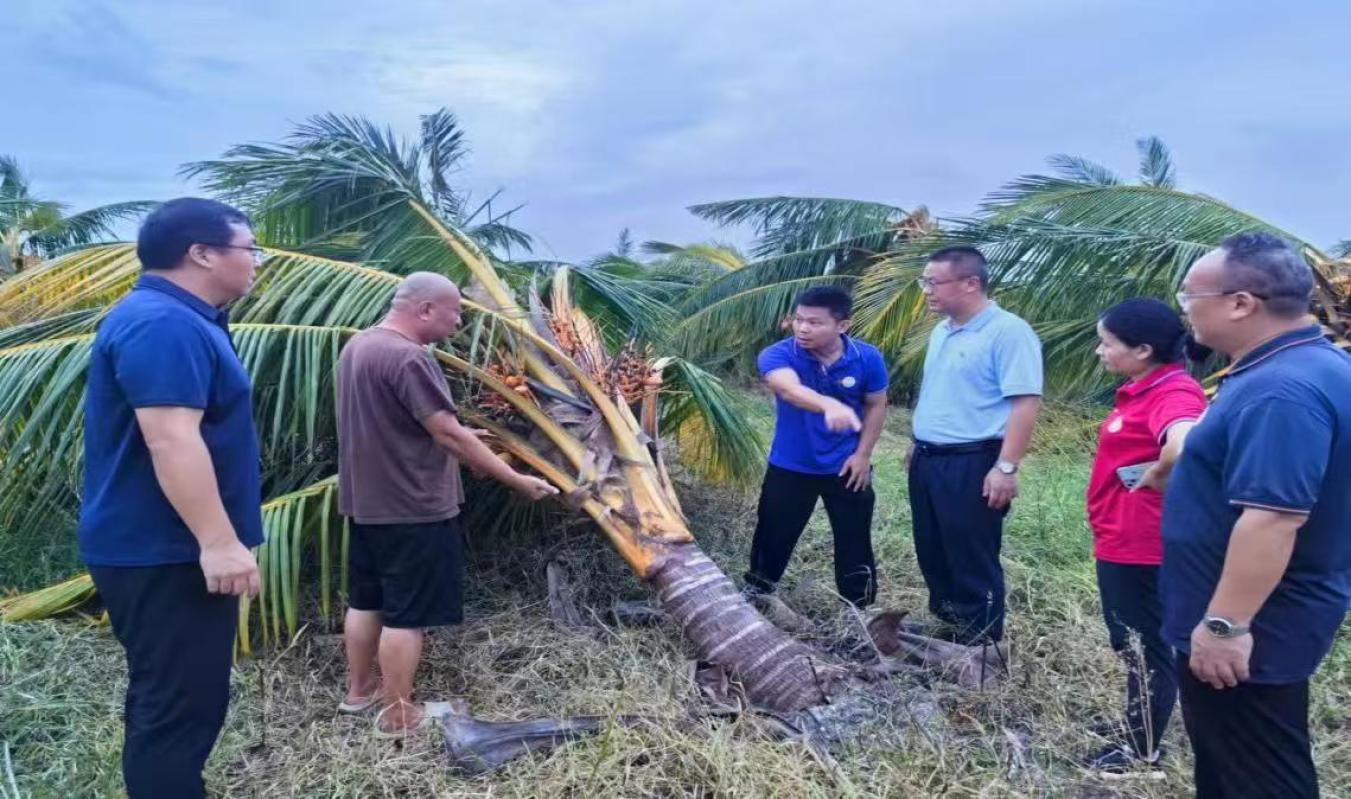 台风"摩羯"离境后,文昌市的椰子、槟榔、油茶等经济作物遭受严重破坏,面对台风过后的满目疮痍,椰子所在积极开展生产自救的同时,充分发挥党组织战斗堡垒和党员的先锋模范作用,第一时间组织精干专家制定《椰子、槟榔台风防灾减灾技术明白纸》《椰子槟榔台风后重要病虫害防灾减灾技术明白纸》并向种植户发放,集结党员干部、科研骨干、博士服务团组建了3支党建引领科技救灾小分队,累计派出专家60余人次奔赴文昌、海口、定安等灾害一线开展灾后恢复技术现场指导工作。根据灾情等级对作物恢复、倒伏扶植、树体管控、病虫害防治等提出针对性救助措施,有力推动海南全省椰子、油茶和槟榔产业科技救灾工作。
