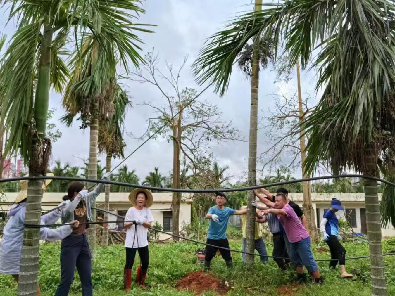 9月9日以来,根据农业农村部党组和中国热科院党组工作的部署要求,热科院环植所、品资所、信息所、分析测试中心和橡胶所等兄弟单位积极响应号召,纷纷来到椰子所开展支援工作,不仅带来了急需的油锯、绳索、食品等救灾物资,并组织人员前往椰子、油棕、油茶、槟榔等种质资源圃,协助开展修枝、扶树、收果、清杂等工作,极大缓解了椰子所因灾情造成的物资短缺问题,为椰子所灾后重建和复工复产工作提供了强有力的支持。
