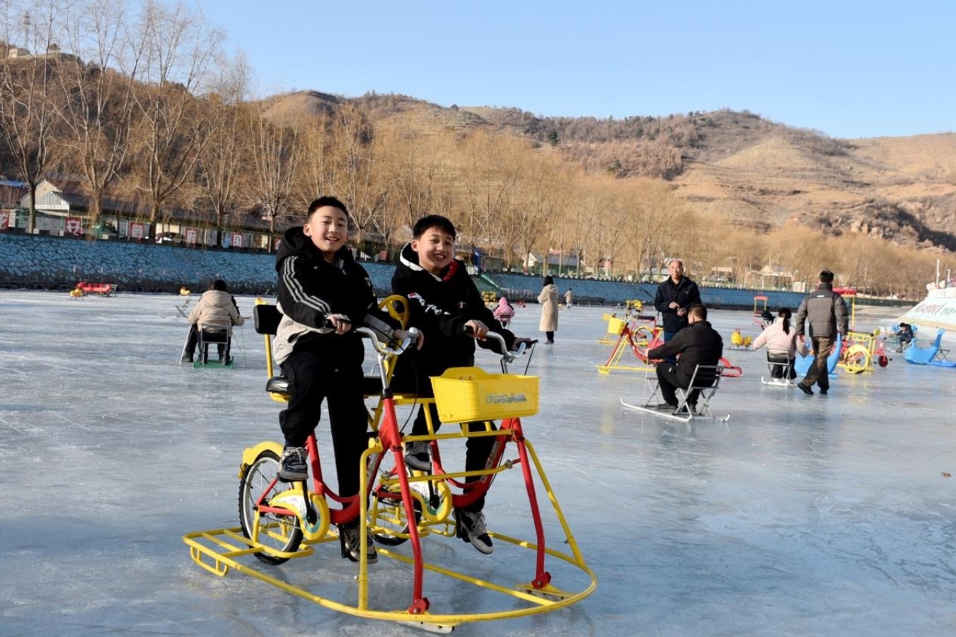 “以前过年要么走亲访友吃吃喝喝,要么宅家刷手机,特别单调。现在家门口就有冰雪乐园,不用跑远路、不用花大钱,全家都能玩得开心。”正在陪孩子玩冰车的游客范雪莹赞叹道。不远处,来自县城的朱猛正带着儿子体验雪圈项目,父子俩顺着雪道飞速滑下,脸上洋溢着幸福的笑容。休息区内,几位老人围坐在一起,看着雪地里嬉戏的孩子,眉眼间满是欣慰。