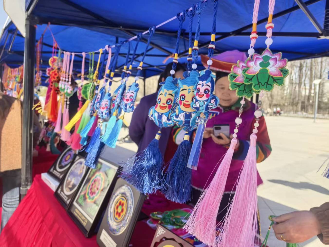 活动现场,一幅幅色彩艳丽、针法细腻的青绣作品整齐陈列,石榴花开、民族团结、十二生肖等主题绣品栩栩如生、意蕴悠长。132幅刺绣精品集中亮相、集中展销,农特产品、非遗手工等特色好物同步登场,一针一线尽显河湟文化的深厚底蕴,一招一式展现海东巾帼的巧手匠心,处处洋溢着传承非遗、奋进新时代的热烈气息。