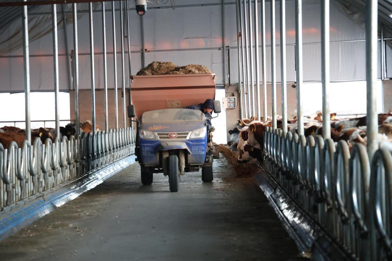 走进突泉县金柱家庭农场的养殖圈舍,工人项纪发正驾驶撒料机匀速前行,将饲料均匀铺撒在食槽中。“我在农场工作三年了,每月工资五千多,负责喂牛。”项纪发说。这份稳定的工作让他对生活充满信心。