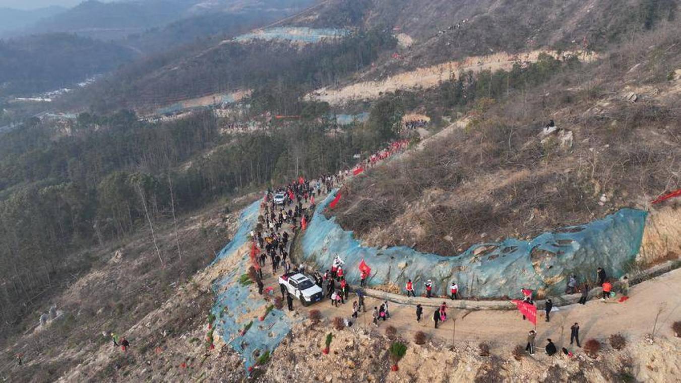 3月12日,第48个植树节,湖北省孝感市大悟县泉水寨林场漫山遍野,红旗飘扬,人声鼎沸,约1000名县直机关干部职工踊跃参加义务植树,大家挥锹挖坑、扶苗浇水,分工协作,亲手栽下一棵棵樟树、湿地松、女贞、蔷薇等树苗,让泉水寨森林公园披上新绿。大悟县丰店镇100多名干群在王店村胡家畈种植基地,栽种桃树、樱花等树苗。当天,大悟全县各乡镇(区)共组织6000余名党员干部职工、志愿者参加义务植树活动,用行动播撒绿色的种子,为“万树村”建设添绿增彩。