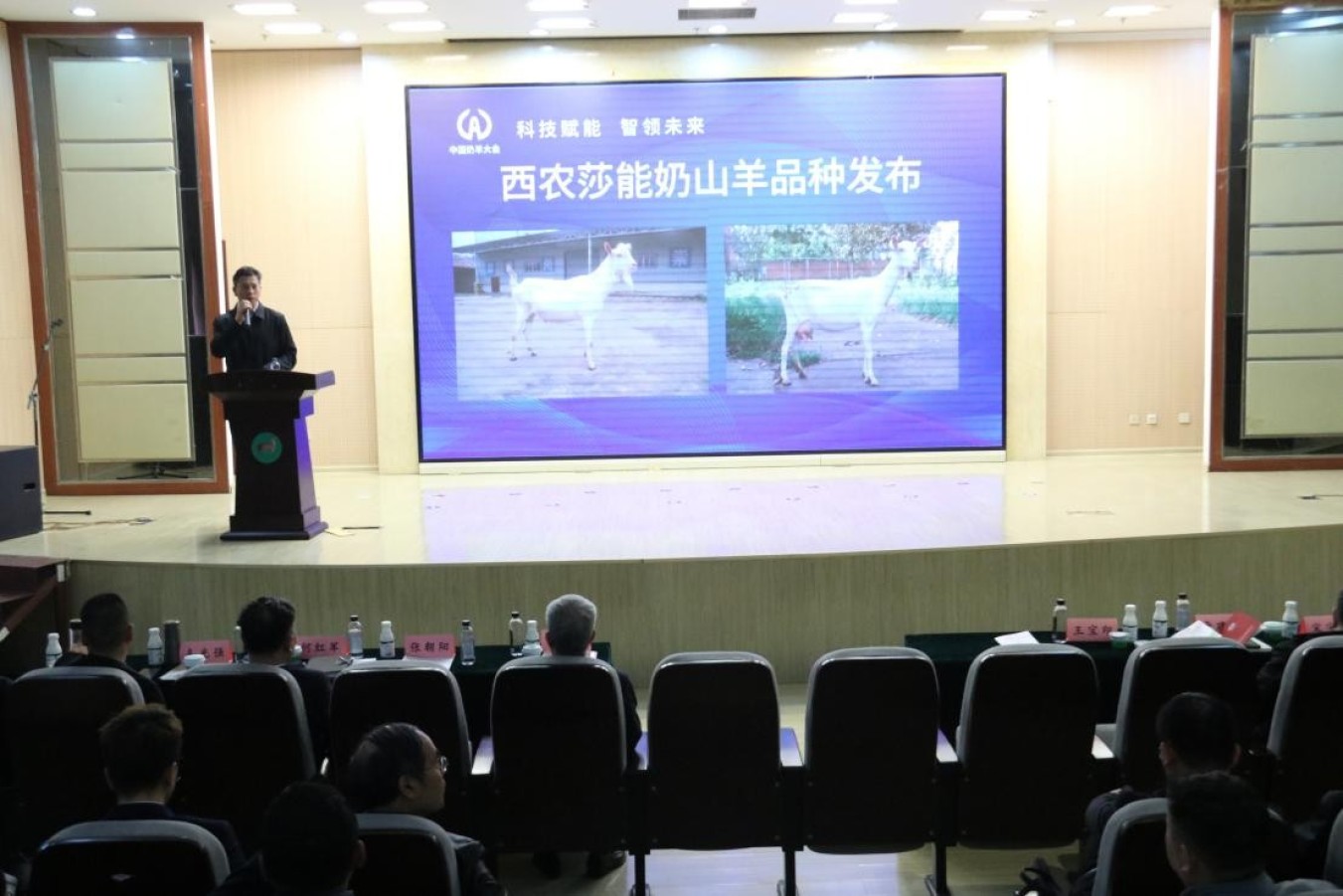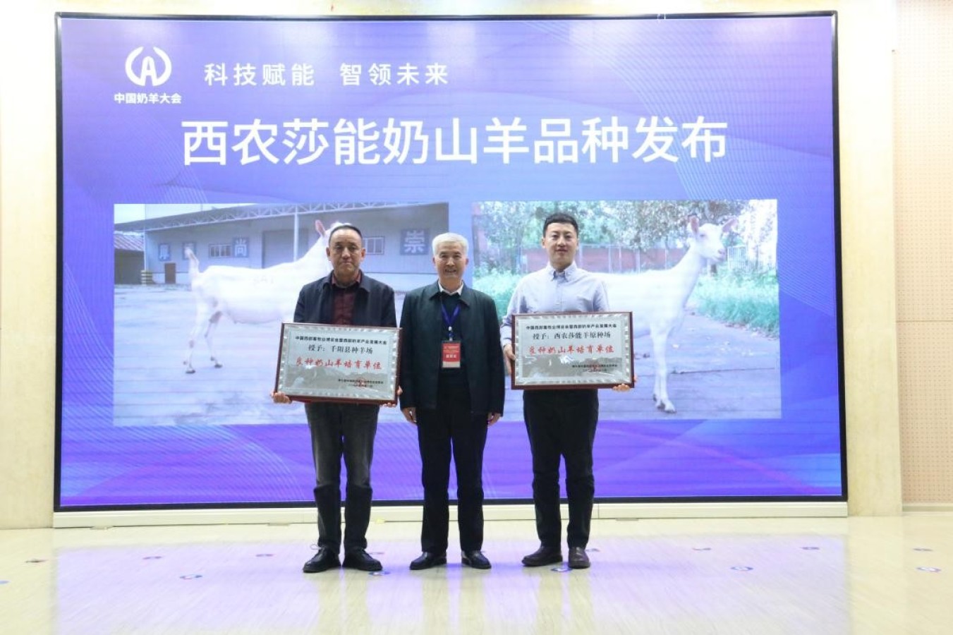 会上正式发布了“西农莎能奶山羊”品种,并为千阳县种羊场、西农莎能羊原种场颁发了“良种奶山羊培育单位”牌匾。随后,西北农林科技大学动物科技学院史怀平教授、宋宇轩研究员分别作了《优质羊乳工程进展》《元生爱特奶绵羊新品种》主题报告;宝鸡市千阳县委常委、副县长何红军则介绍了西农莎能奶山羊在千阳的世纪征程。