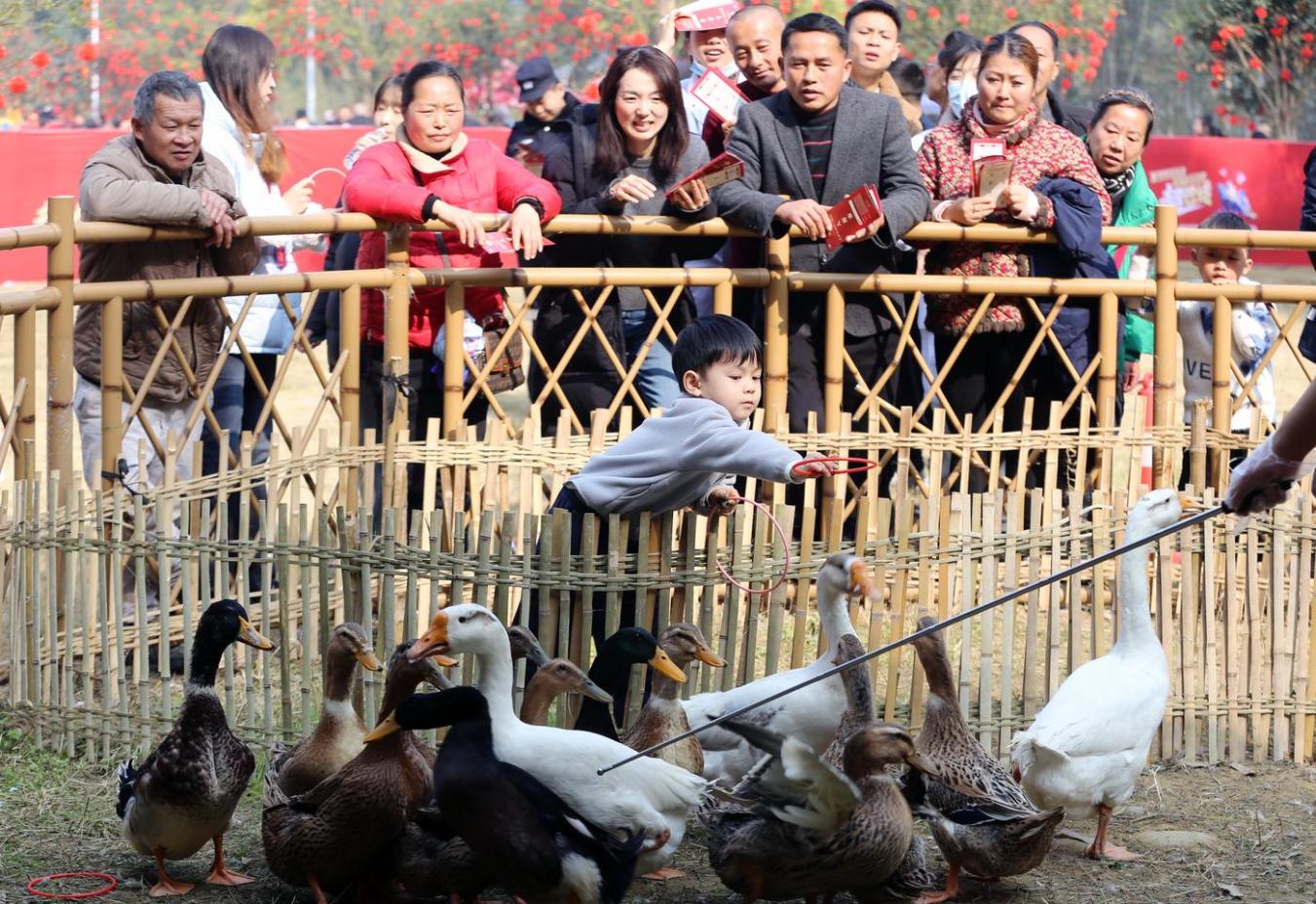 1月17日,四川省乐山市市中区剑峰镇第三届我在剑峰吃“刨汤”暨四川“百城千乡万村(社区)”全民健身系列赛事活动在该镇五星村金猪村落举行,活动以年猪为媒,通过金猪祈福祭祀仪式、全民健身活动、农村市集、年猪大宴以及游园活动。