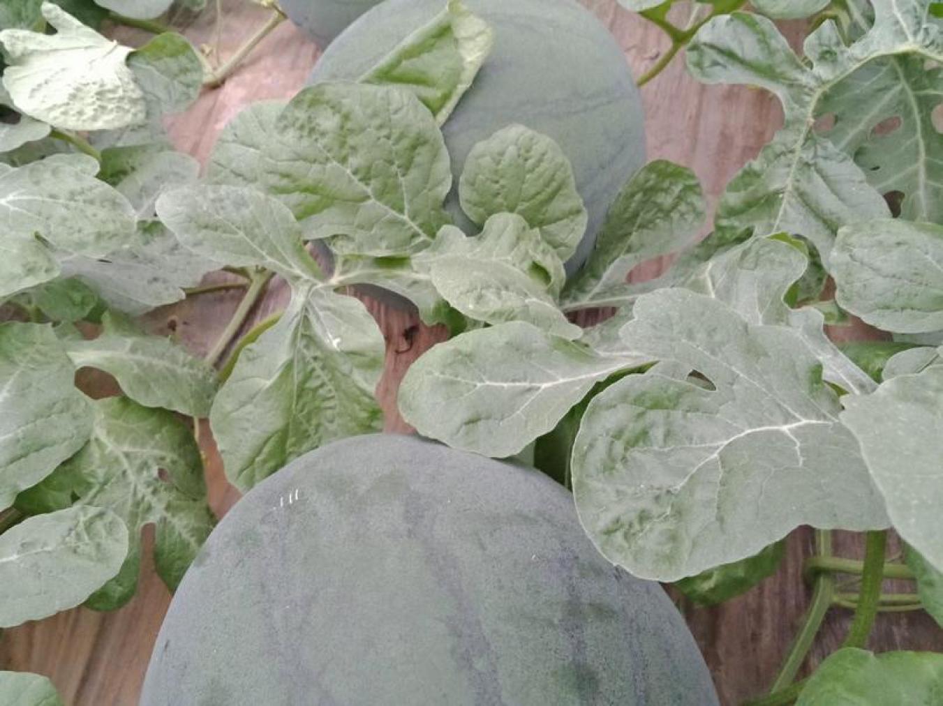 它的生长周期春播平均34天,秋播平均32天,属于中晚熟品种。桂冠一号以其强大的生长势和抗早衰能力脱颖而出,同时对水渍和水肥的耐受性也较强,高抗炭疽病,分枝多,易于坐果。果实商品率高达92.0%,平均单果重约4.89公斤,圆形的果实,墨绿色的果皮上披着少腊,厚度约1.4厘米,果肉红色,肉质实脆,中心糖度平均为10.7,口感中上,无籽性状优良,果皮较硬,耐贮运性较好。